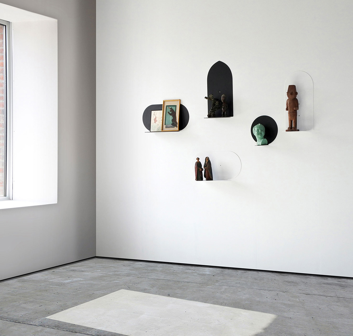 Aureole Mensola NB05 by Covo è una mensola di design realizzata in acciaio verniciato bianco o nero dalla forma ellissoidale con porta oggetti sul frontale, ideale da appendere a muro scegliendo configurazioni personalizzate ed originali per ogni parete.