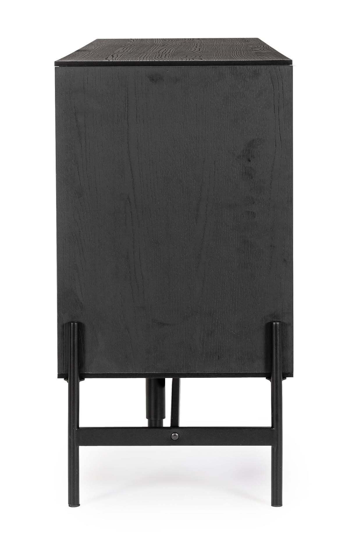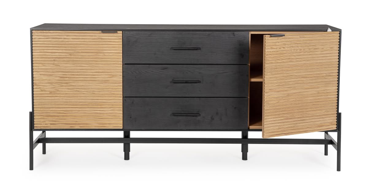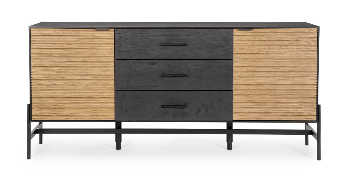 Credenza 2A-3C Allycia nero-naturale Bizzotto | Mobile contenitore a due ante e tre cassetti in legno, MDF e acciaio