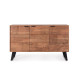 Credenza 3 ante Isar di Bizzotto è un mobile contenitore di design con struttura in legno di acacia, schienali in compensato, frontali ante intarsiati e lavorati a mano, finitura acrilica protettiva e maniglie e gambe in acciaio. Gambe da assemblare.