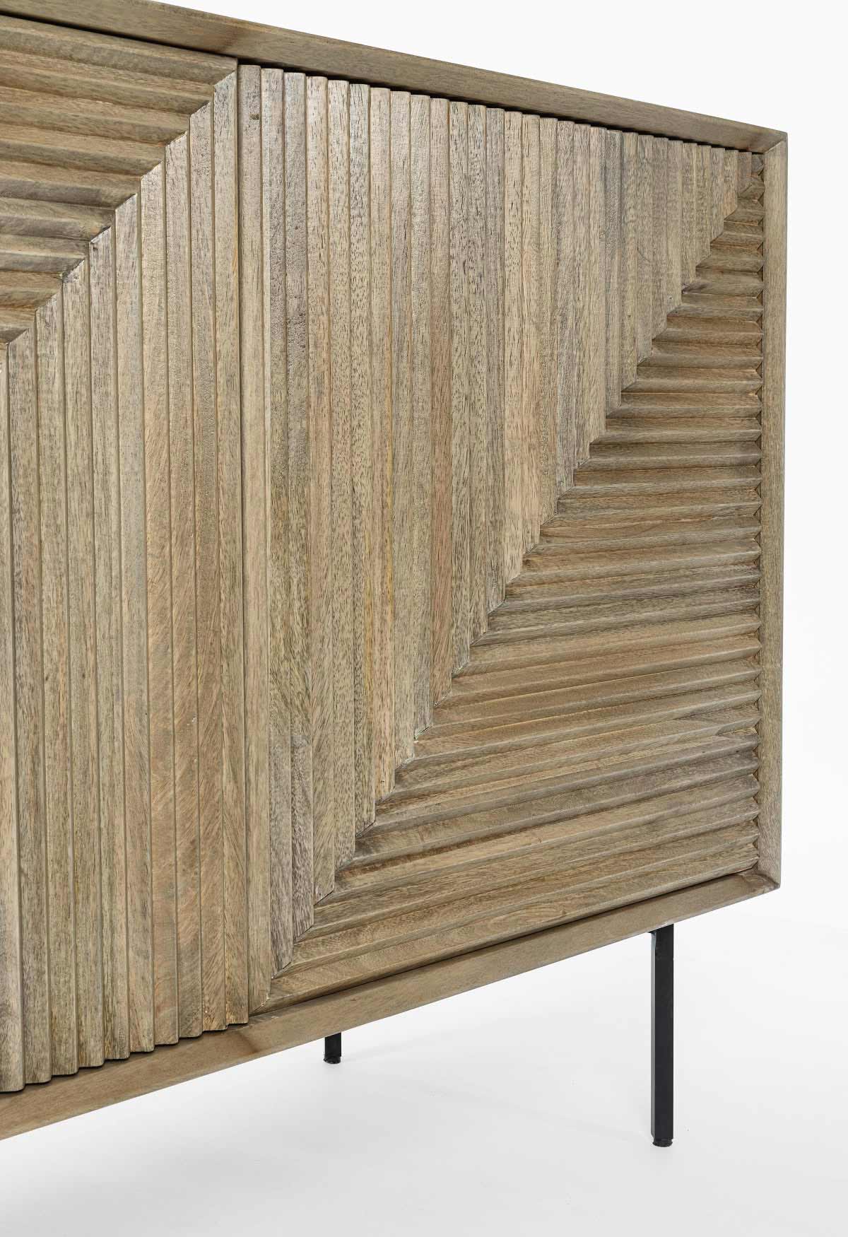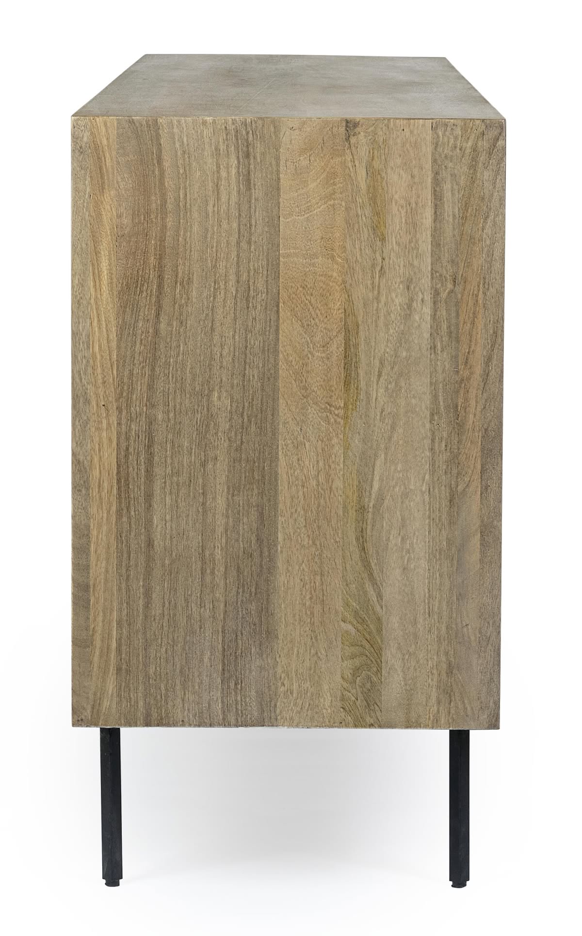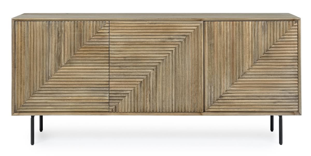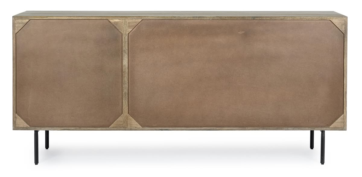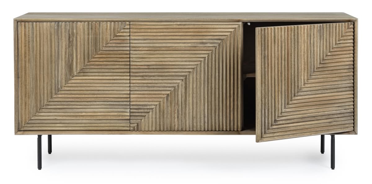 Credenza 3A Darsey by Bizzotto è un mobile contenitore di design a 3 ante con struttura in legno di mango, schienale in MDF, finitura con vernice a base d'acqua, gambe in acciaio e vano porta comprensivo di mensola. Gambe da assemblare.