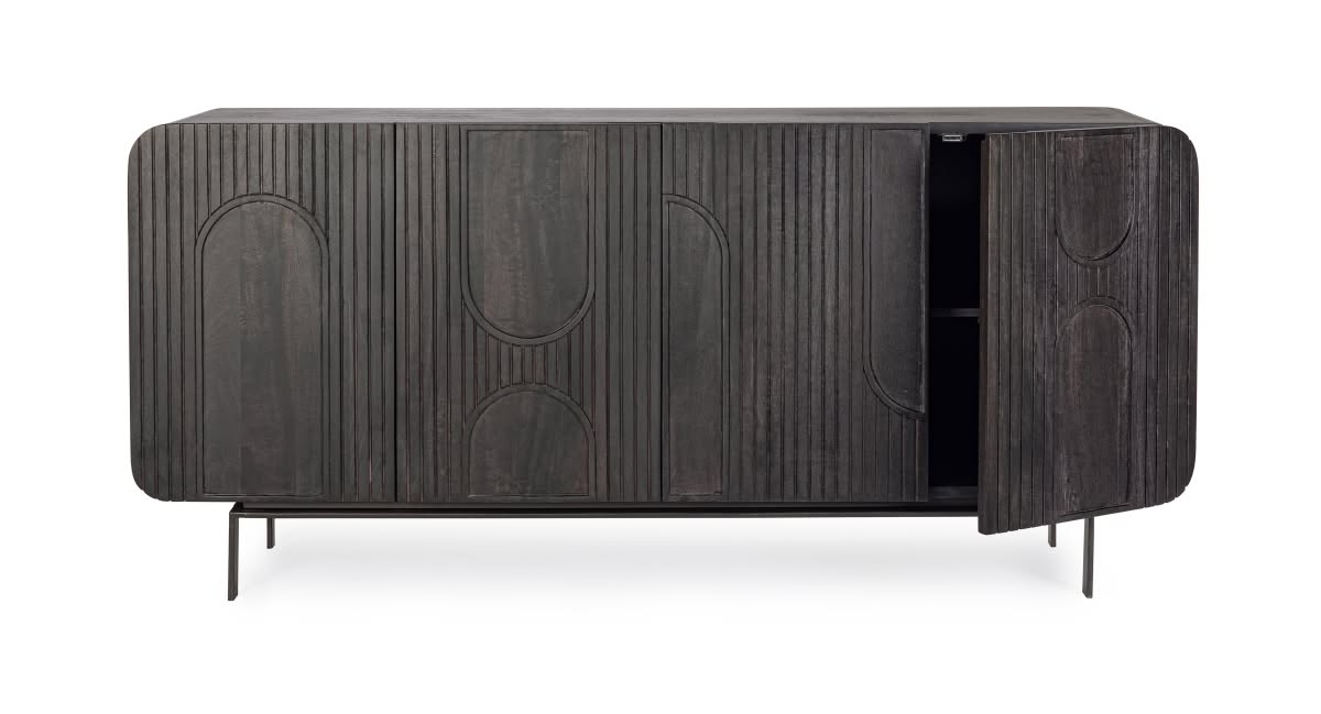 Credenza 4A Orissa nero Bizzotto | Mobile contenitore in legno 4 ante