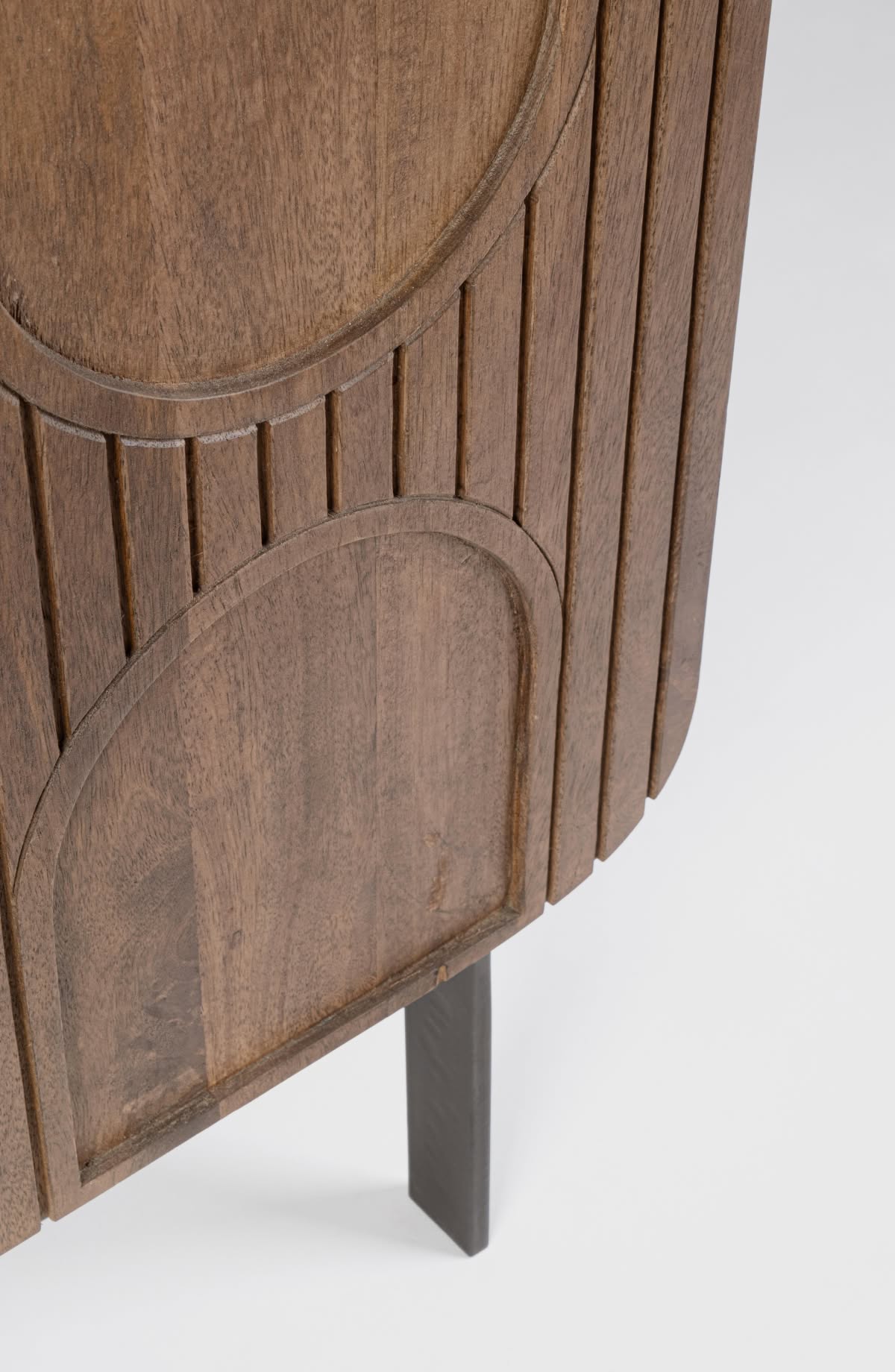 Mobile Alto 4A Orissa naturale by Bizzotto è un mobile contenitore di design con struttura in legno di mango, schienale in mdf. Finitura con vernice a base d'acqua. Base gambe in acciaio verniciato a polvere epossidica. Vano porta comprensivo di mensola. Gambe da assemblare.