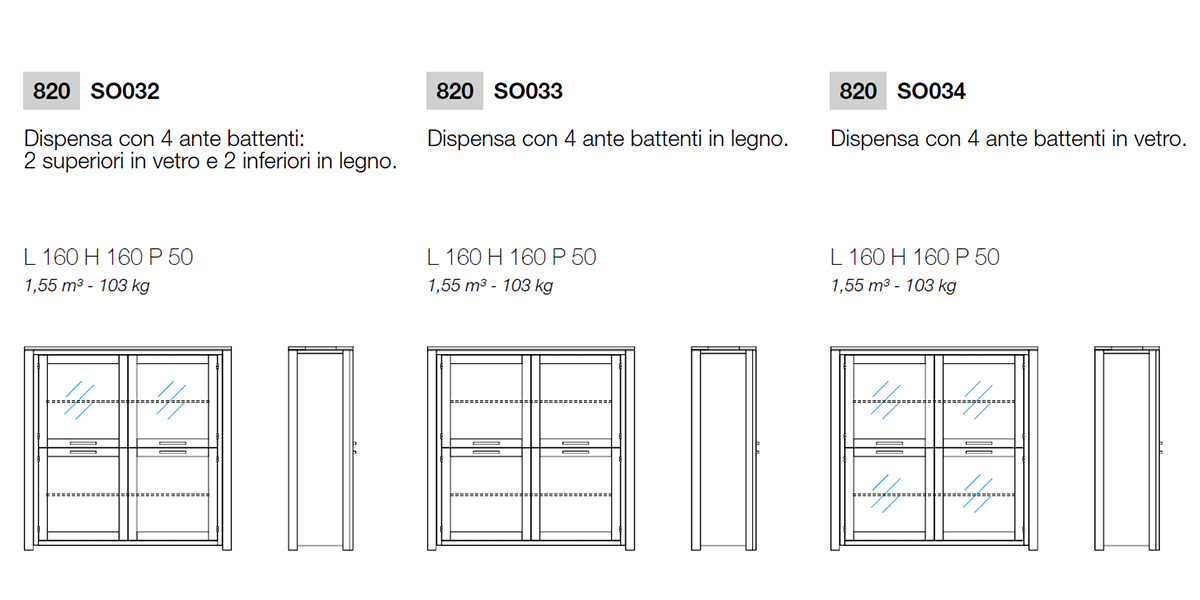 820-SO032: L 160 H 160 P 50 / 4 ante battenti - 2 superiori in vetro e 2 inferiori in legno