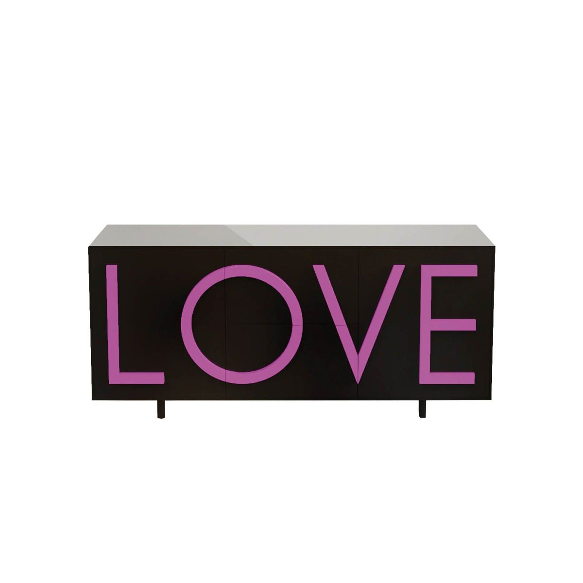 Driade Love Medium Contenitore nero, rosa fluo è un mobile contenitore di design con due ante laterali a battente e ripiano interno spostabile, con due cassettoni centrali ad estrazione totale. Struttura realizzata in MDF laccato esternamente ed internamente. Scritta LOVE in rilievo con funzione di maniglia realizzata in MDF laccato facilmente sostituibile personalizzando in questo modo il contenitore. Piedini cilindrici regolabili diametro 3,5 cm. ed altezza 10 cm. dello stesso colore della struttura. Uso solo interno.