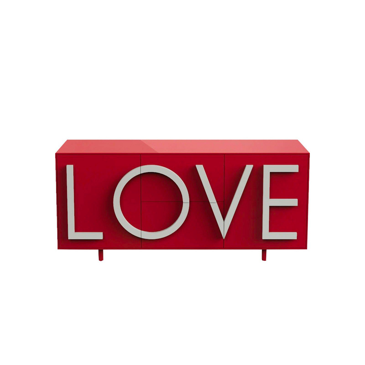 Con la sua forma caratterizzante e tutta da scoprire, la madia LOVE (cabinet) costituisce un manifesto espressivo, un poster bidimensionale che parla d’amore. Dal connubio tra estetica e funzione, le linee diventano tridimensionali, il foglio si estrude diventando contenitore e le lettere escono dal foglio generando delle maniglie, elementi versatili e disponibili in vari colori. «Amore è scegliersi a scatola chiusa, avvolti da un alone di mistero. Amore è un fedele custode di sogni condivisi, un contenitore di possibilità» Fabio Novembre