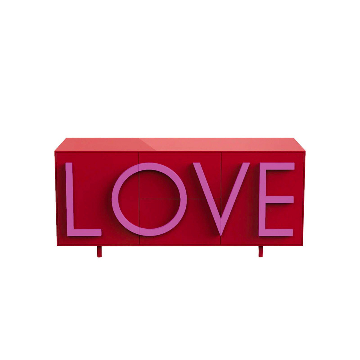 Con la sua forma caratterizzante e tutta da scoprire, la madia LOVE (cabinet) costituisce un manifesto espressivo, un poster bidimensionale che parla d’amore. Dal connubio tra estetica e funzione, le linee diventano tridimensionali, il foglio si estrude diventando contenitore e le lettere escono dal foglio generando delle maniglie, elementi versatili e disponibili in vari colori. «Amore è scegliersi a scatola chiusa, avvolti da un alone di mistero. Amore è un fedele custode di sogni condivisi, un contenitore di possibilità» Fabio Novembre