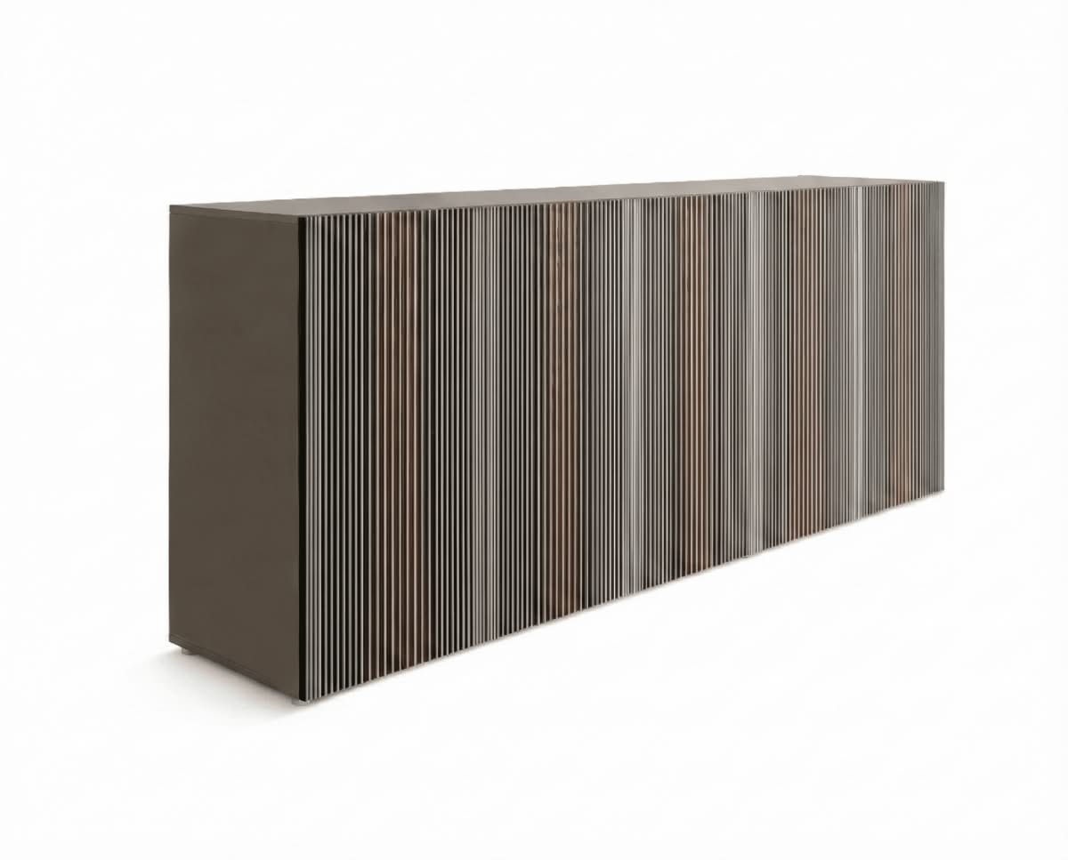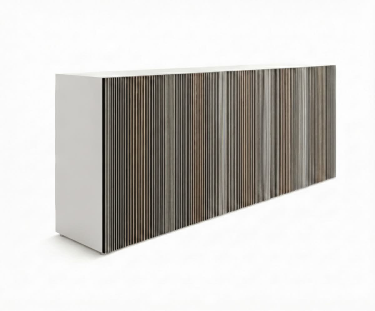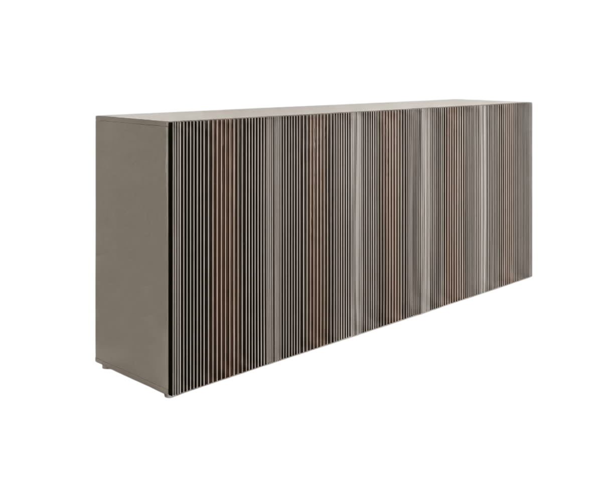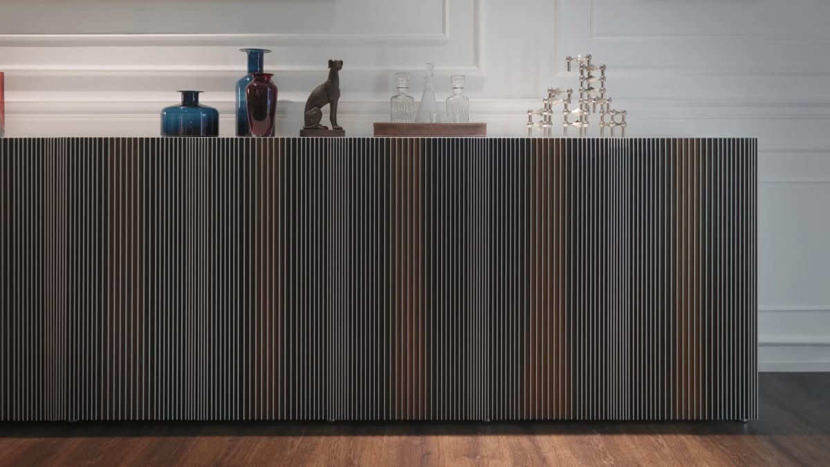Carlos Opaco Madia di Horm è il mobile contenitore di design con struttura in pannelli di particelle di legno impiallacciati e tinti oppure laccati. Ante in tamburato di MDF con rinforzi trasversali interni in metallo, impiallacciate in rovere termotrattato e fresate verticalmente per accogliere inserti verticali di laminato full-color bianco. Ripiani interni in vetro temperato trasparente. Carlos è una madia che unisce funzionalità ed emozione visiva, trasformando un arredo in un’esperienza percettiva. Il suo linguaggio estetico nasce da una libera interpretazione delle opere dell’artista venezuelano Carlos Cruz-Diez (1923-2019), maestro dell’Op Art e dei fenomeni cromatici. Non si tratta di un semplice contenitore: Carlos è un palcoscenico di colori in movimento, che mutano al variare dello sguardo e della luce. L’osservatore non rimane spettatore passivo, ma diventa protagonista di un’interazione dinamica. Da ogni prospettiva emergono sfumature inaspettate, in un gioco visivo che ricorda il sipario di un teatro che si apre e si chiude, rivelando emozioni sempre nuove. Nella versione con scocca laccata, disponibile in sette varianti cromatiche con finitura lucida o opaca, la madia esprime la sua anima più contemporanea e versatile. Il colore diventa materia progettuale: può fondersi armoniosamente con l’ambiente oppure diventare accento scenografico, capace di definire lo stile dell’interior. La struttura rigorosa e minimale dialoga con la ricchezza cromatica delle superfici, restituendo un equilibrio perfetto tra razionalità architettonica e vibrazione artistica. È un arredo che parla il linguaggio della modernità, ma porta con sé la forza senza tempo dell’arte ottico-cinetica. Disponibile in due altezze, h66 e h98, Carlos si adatta a diverse funzioni e contesti d’arredo: la versione più bassa è ideale come madia porta TV, perfetta per living contemporanei dove tecnologia e design convivono con equilibrio; quella più alta, invece, assume un carattere più scultoreo e decorativo, diventando protagonista in ambienti dining o spazi rappresentativi.