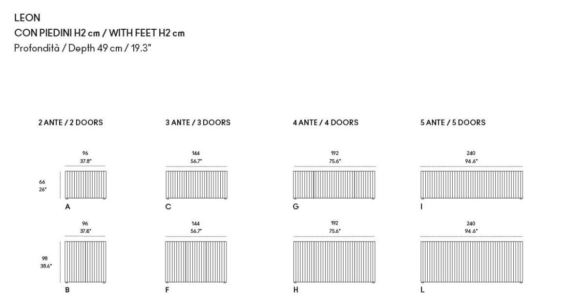 ➥ È possibile invertire la posizione delle finiture sul frontale esterno delle ante con un supplemento prezzo.