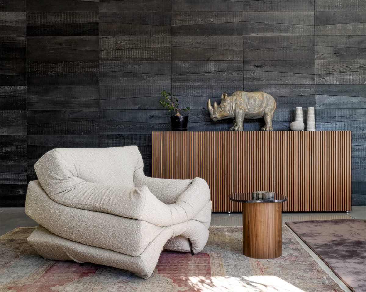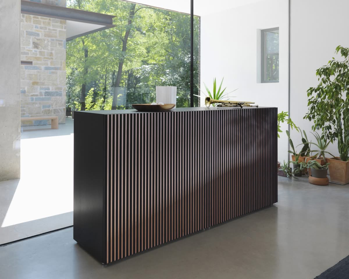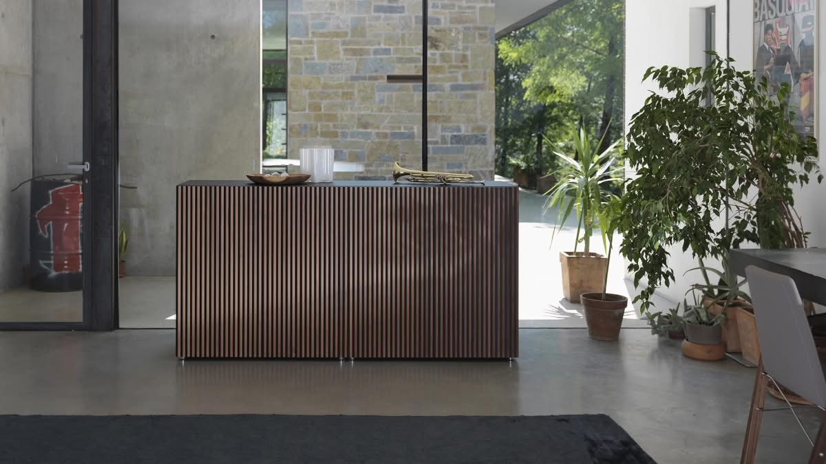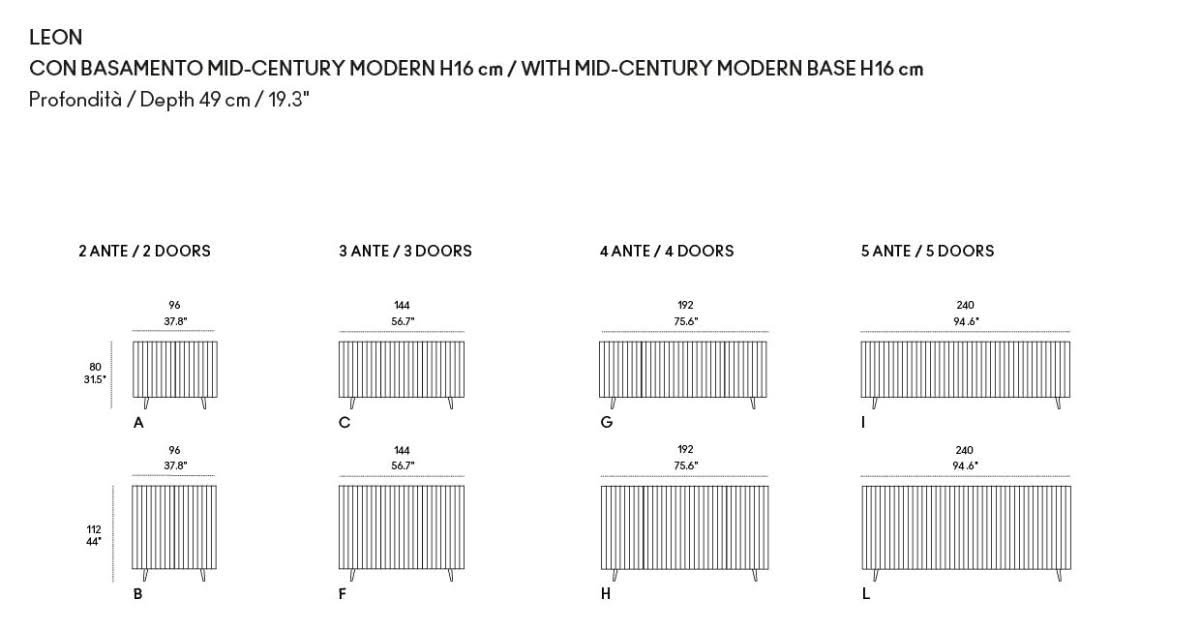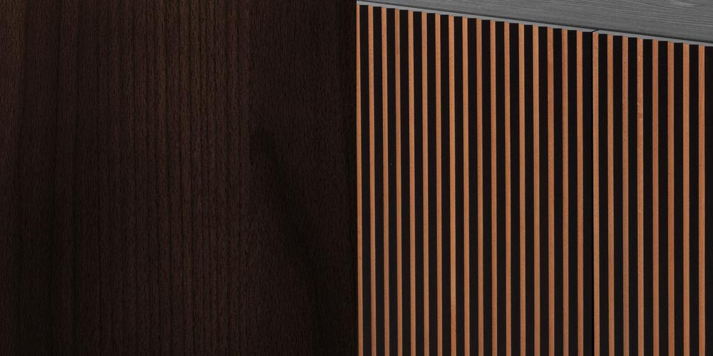 Leon Wood Moca Madia di Horm è il mobile contenitore di design con struttura e ante in pannelli di particelle di legno o in MDF impiallacciati e tinti. Inserti a sezione triangolare in legno massello di faggio tinto. Ripiani interni in vetro temperato. Leon Wood Minimal Design celebra l'essenzialità della forma e della materia. Il ritmo verticale del legno diventa un gioco di luci e ombre, arricchito dalla texture e dalle venature naturali della superficie. La base Minimal Design riduce il peso visivo della struttura, enfatizzandone le linee pure e il carattere architettonico. Elegante, caldo e discreto, Leon Wood Minimal Design si inserisce con naturalezza in interni raffinati, dove la bellezza risiede nella semplicità e nelle proporzioni.