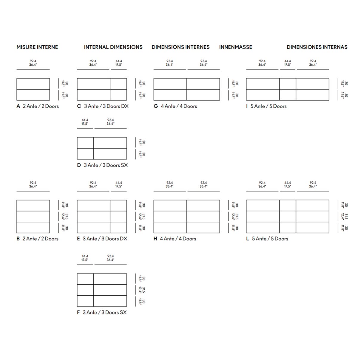 ➥ È possibile invertire la posizione delle finiture sul frontale esterno delle ante con un supplemento prezzo.