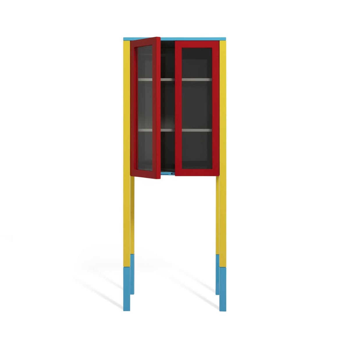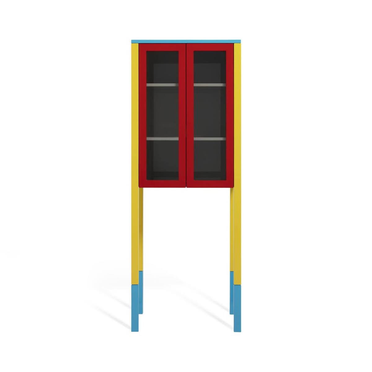 Memphis Milano D’Antibes Mobile contenitore di George J. Sowden è un mobile contenitore di design che si presenta come una vetrina con una struttura geometrica in legno laccato sostenuta da lunghe gambe. Si fa notare per l’uso dei colori primari e contrastanti rispetto ai suoi due lati serigrafati con motivi decorativi. Ogni elemento è stato sapientemente messo in risalto da Sowden da un colore diverso.