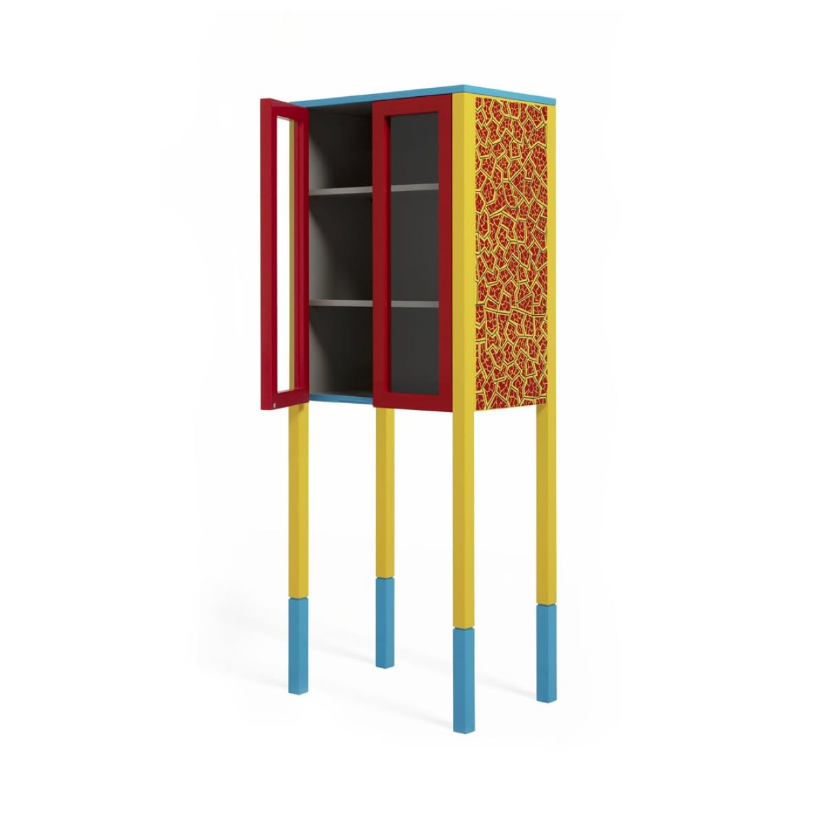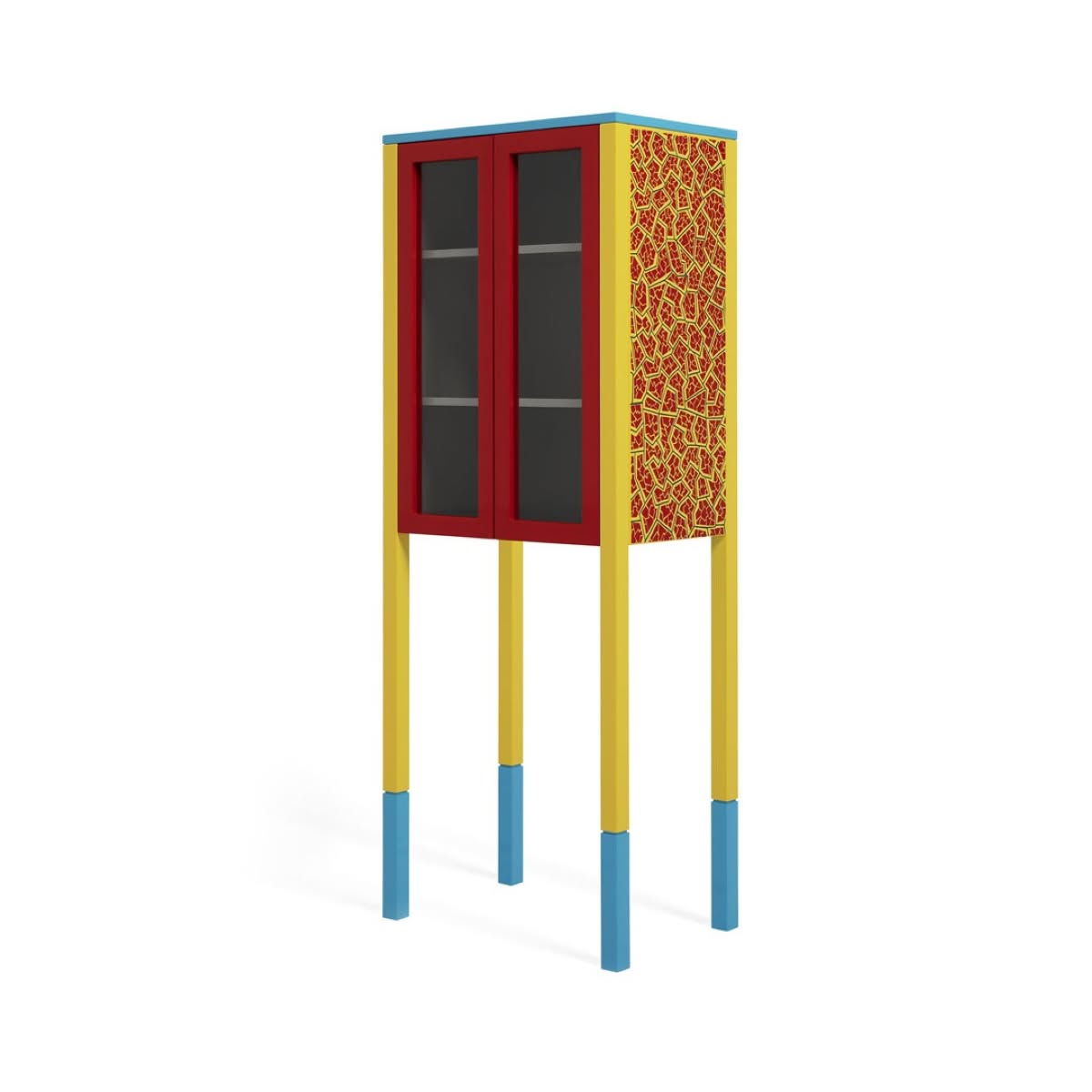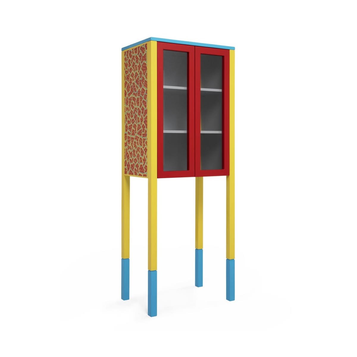 Memphis Milano D’Antibes Mobile contenitore George J. Sowden | Vetrina in legno laccato e serigrafato con motivi decorativi, ante in vetro temprato