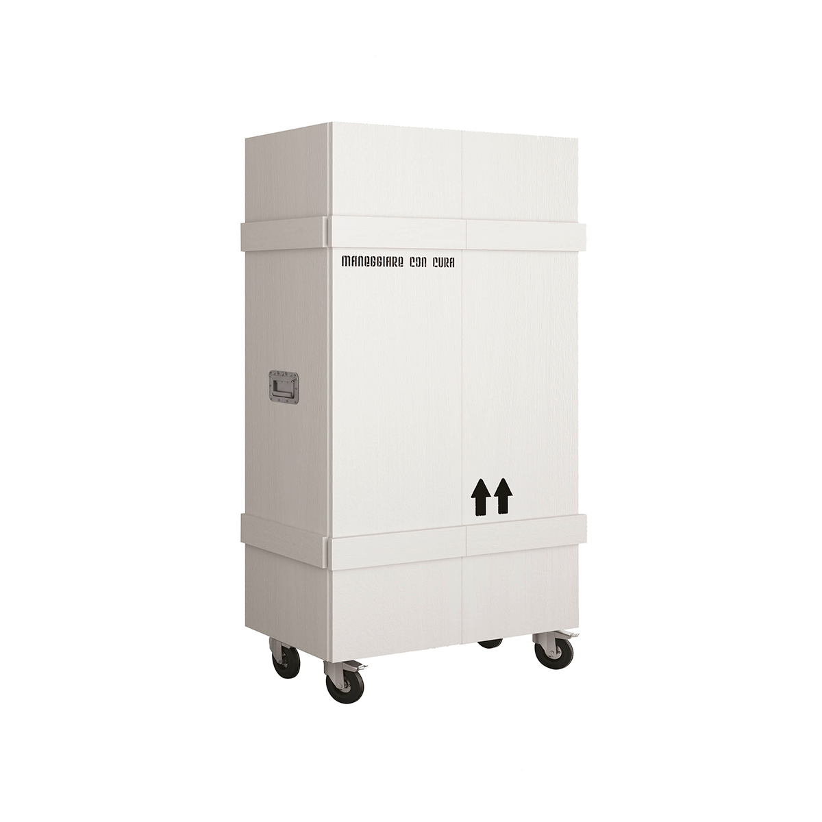 Alto 50 Contenitore è il mobile contenitore in agglomerato di legno a 2 ante battenti completo di maniglie e ruote industriali (h. 15 cm con freno). Superfici esterne in legno di larice spazzolato. Finitura goffrata nei colori a campionario. Disponibile anche in versione armadio con tubo appendiabiti (profondità 62 cm).