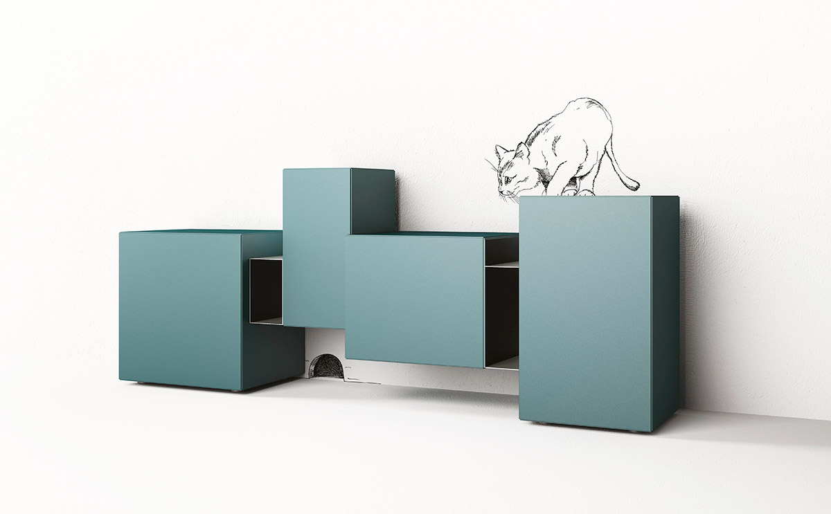 Brooklyn Credenza è il mobile contenitore composta da contenitori in agglomerato di legno disponibili nei colori a campionario in finitura goffrato, piedini altezza 2cm regolabili, inserti in metallo disponibili nei colori a campionario, finitura goffrata.