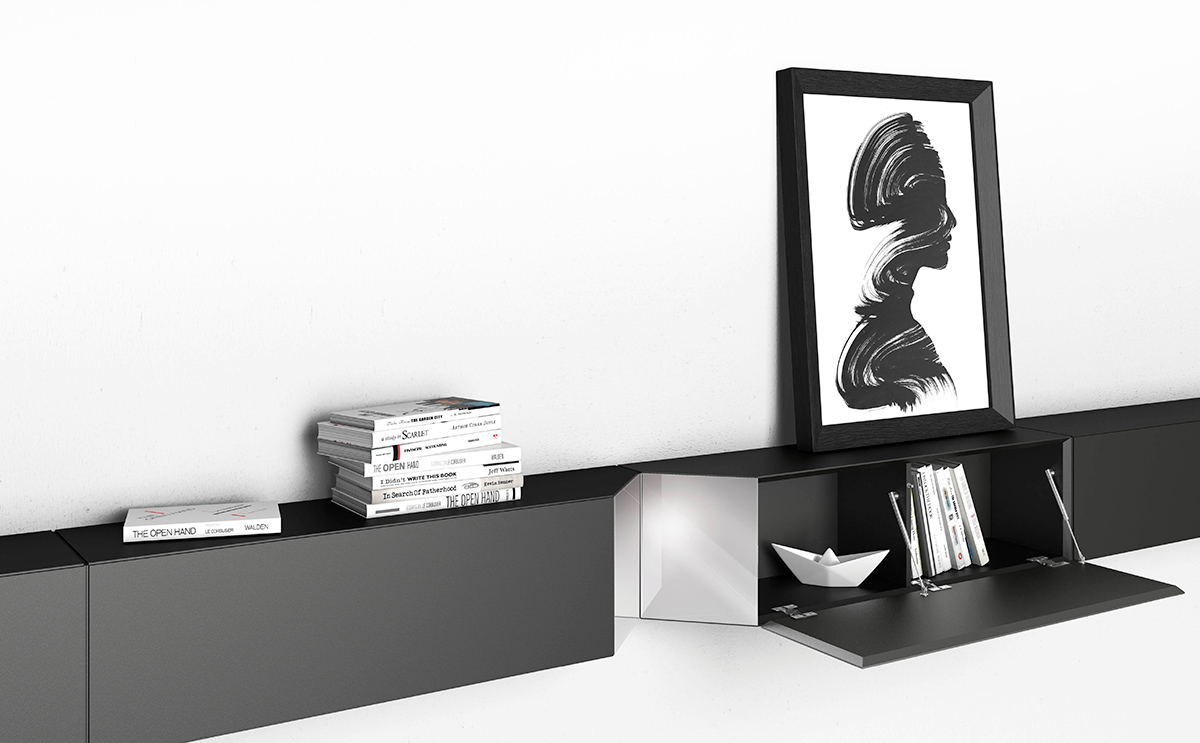 Canto Contenitore pensile con specchio Minottiitalia | Mobile contenitore in agglomerato di legno con specchio