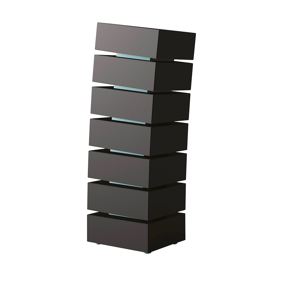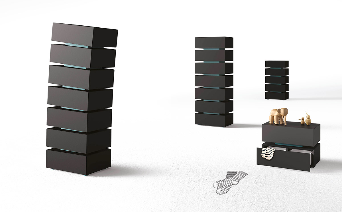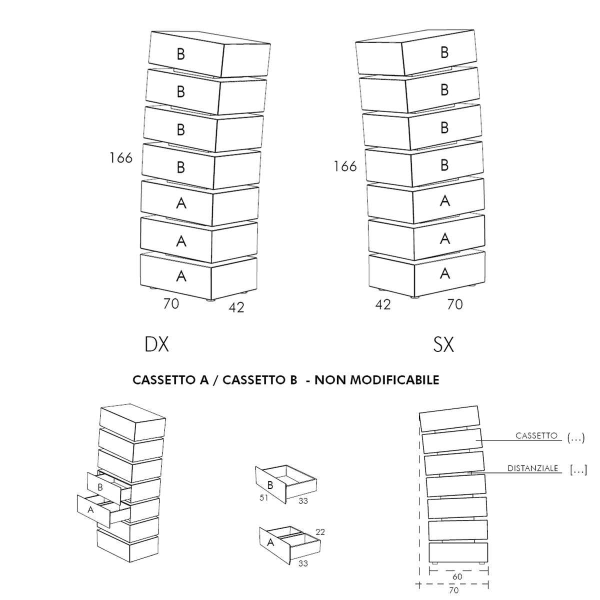 Pisa Cassettiera è il mobile contenitore con distanziali in agglomerato di legno composta da 7 cassetti, lavorazione a 45° sui 4 lati, piedini altezza 2 cm regolabili. Finitura goffrata nei colori a campionario. Cassettiera e distanziali possono avere colori diversi.