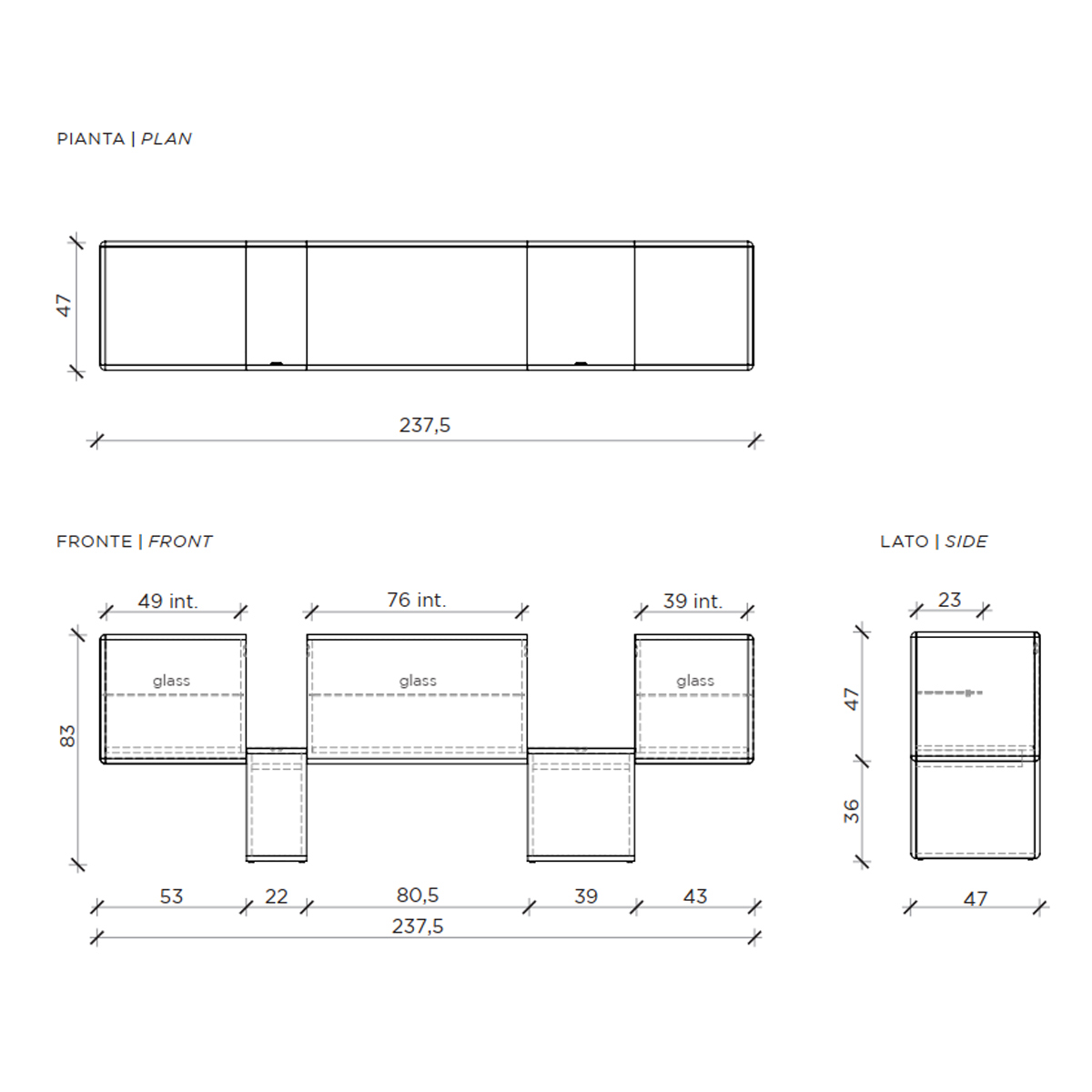 238 x 47 x H.83 cm