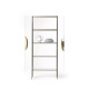 Finiture: struttura con finitura nera opaca, maniglia in finitura nickel nero e vetro fumé; struttura con finitura ottone brunito satinato, maniglia in finitura oro 24 K e vetro trasparente