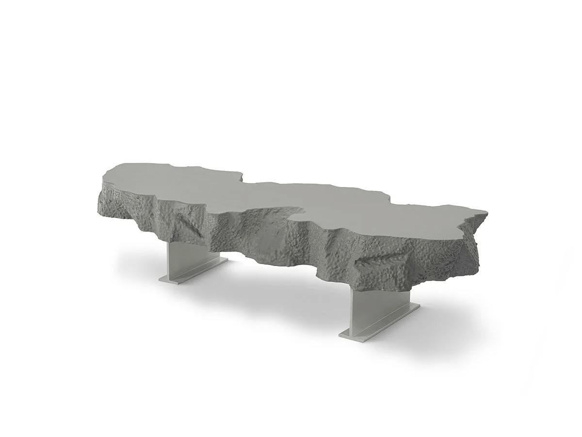 Gufram Broken Bench Panca | Lastra irregolare in morbido poliuretano rifinita a mano in Guflac® sorretto da travi in agglomerato plastico ad alta resistenza