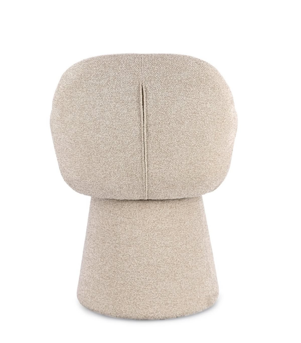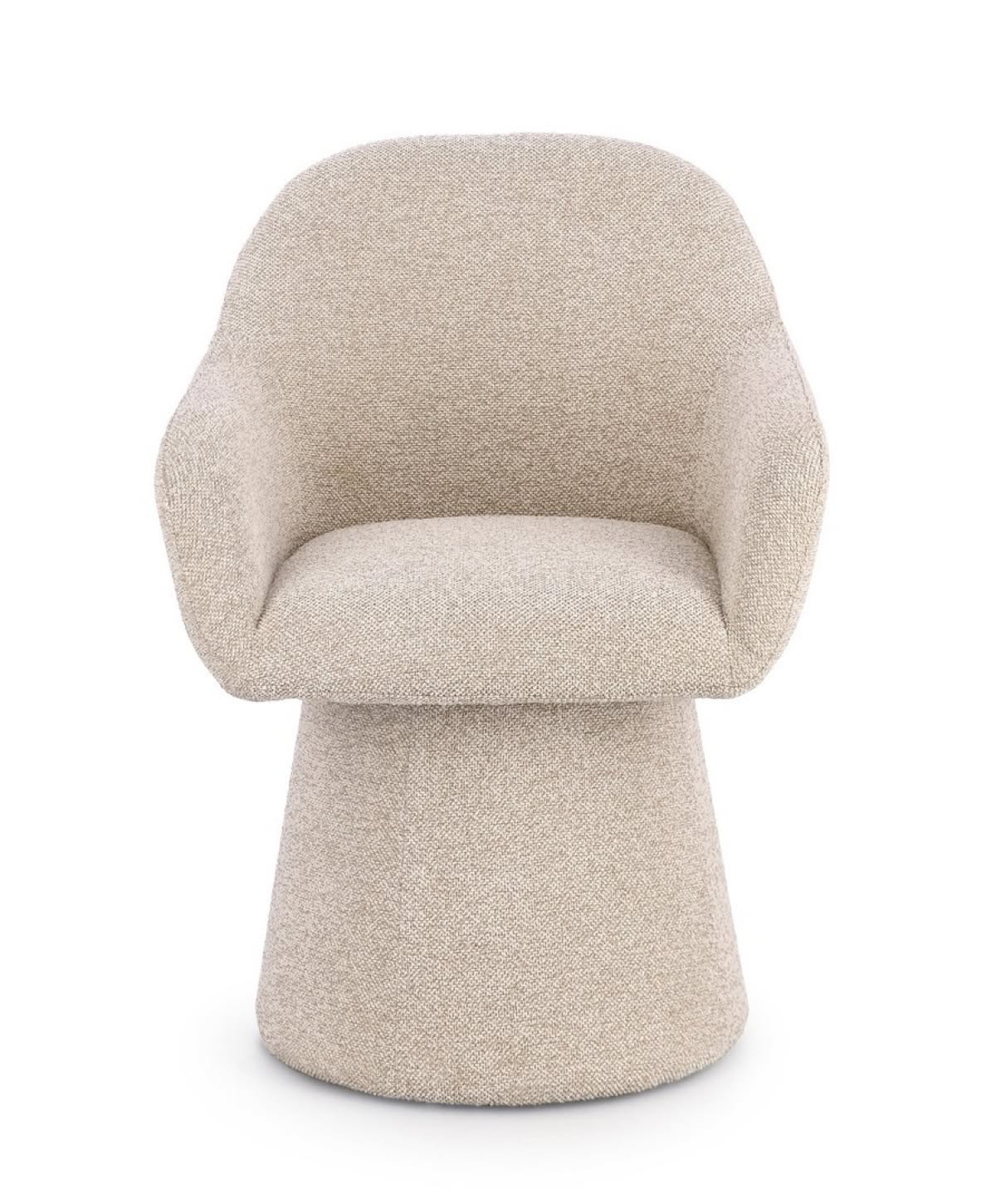 Poltrona Girevole Antara beige di Bizzotto è poltroncina di design con struttura in acciaio e compensato. Rivestimento in 100% poliestere effetto bouclè. Imbottitura in schiuma poliuretanica densita' seduta 28kg/m3 schienale 24kg/m3. Girevole 360°