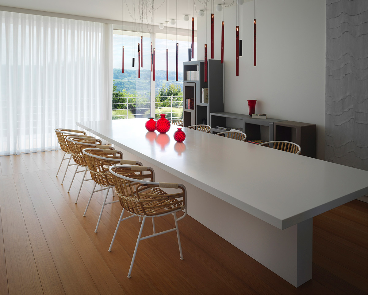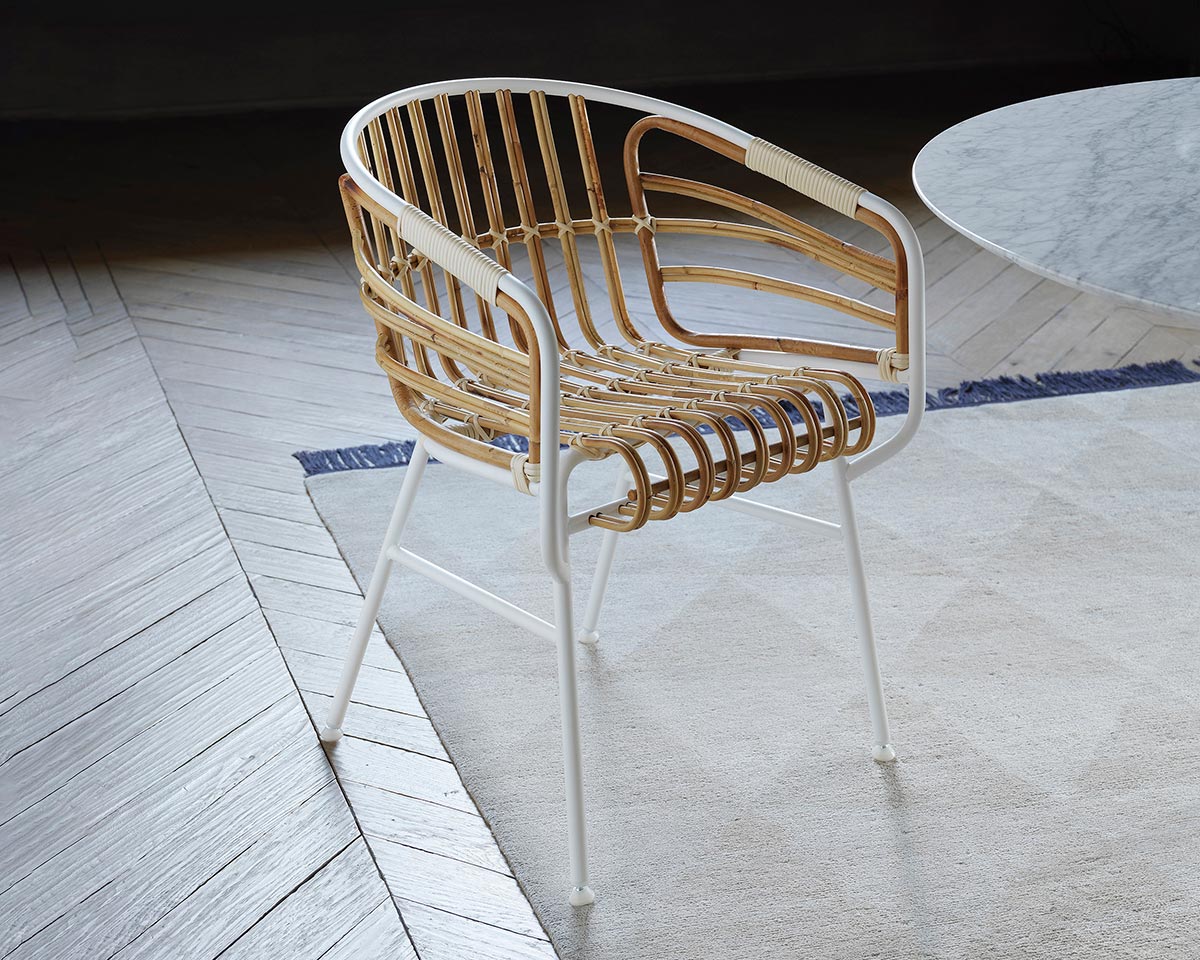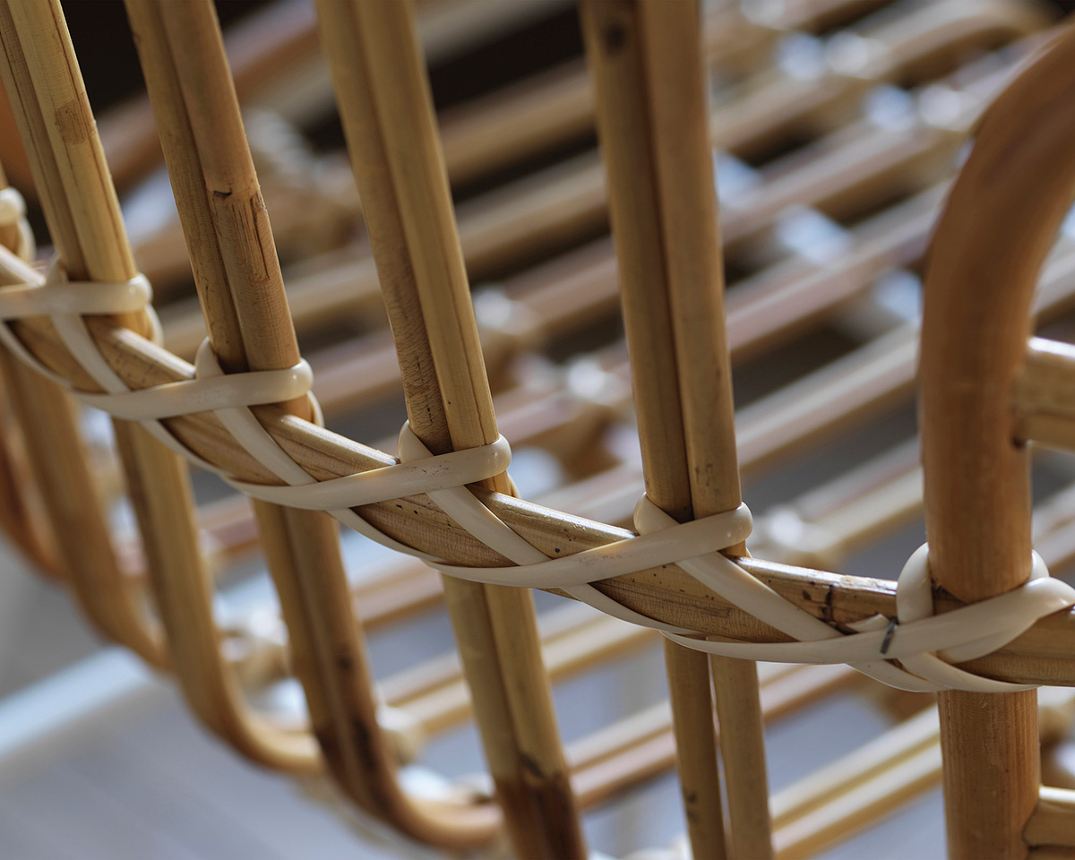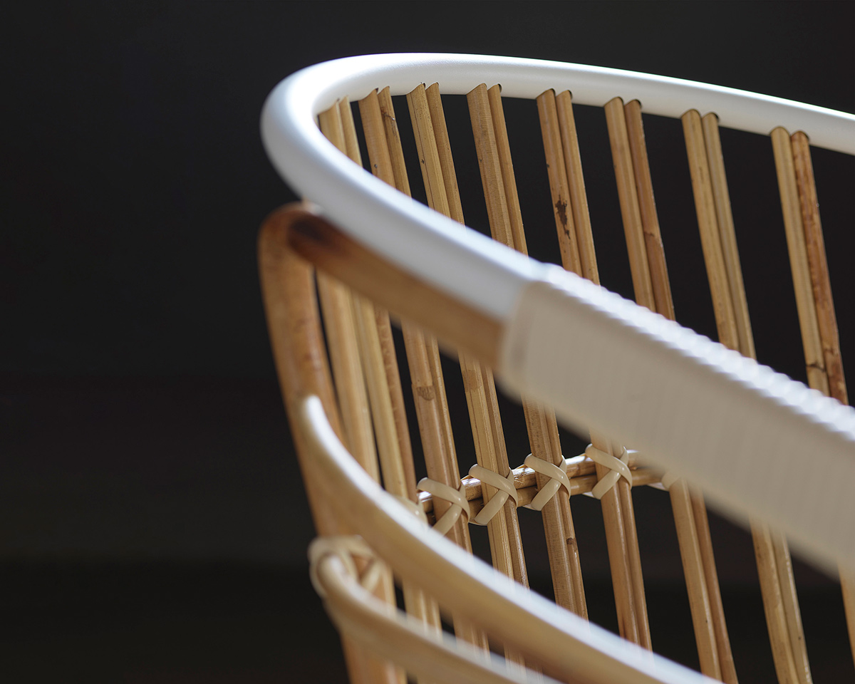 Raphia Rattan sedia di Casamania è una poltroncina di design nata dalla ricerca progettuale sull’utilizzo dei materiali e sulle relative applicazioni all’arredo, è il connubio tra la contemporaneità e la tradizione, tra la tecnologia e l’artigianalità. Un ossimoro che mette insieme due anime della produzione legata alla territorialità italiana: l’industria del metallo e le piccole, storiche, realtà manifatturiere del rattan e midollino. Oggi esistono ancora poche realtà che conservano i saperi di questa tradizione, dove la manualità e l’artigianalità di ogni pezzo lo rendono unico. Raphia porta con sé questa storia e tradizione in un contesto contemporaneo.