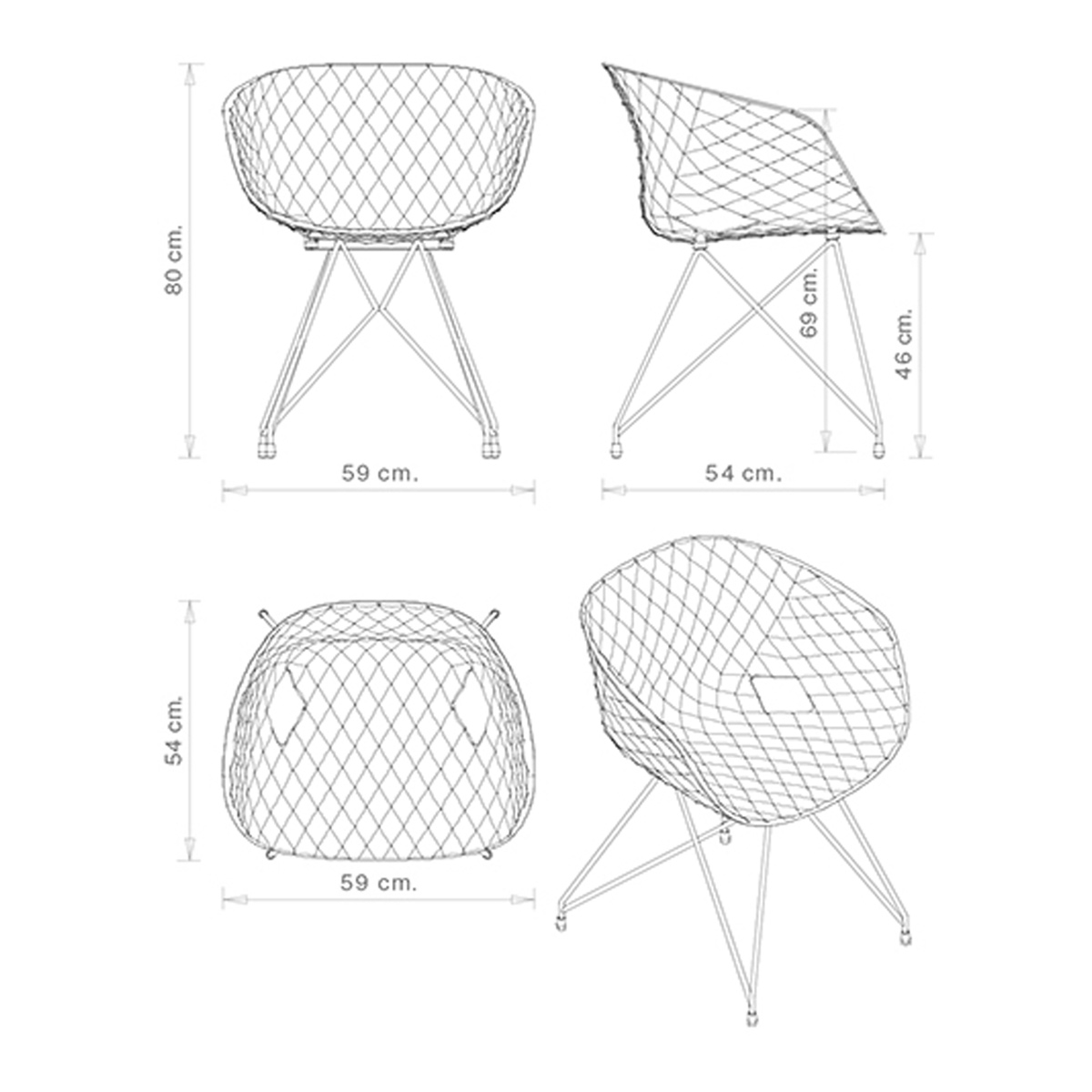 Uni-ka 596 Poltroncina by Et al. è la poltroncina di design con telaio a traliccio in tondino di acciaio e seduta in polipropilene a pozzetto con particolare texture ad effetto trapuntato. Comoda, avvolgente e coloratissima, adatta a qualsiasi contesto nel settore del privato e del contract è sinonimo di aggregazione sociale e incontro. Le particolari aperture alla base della seduta ne rappresentano l'aspetto peculiare, evidenziando il motivo a rombi della texture e delineando i braccioli.