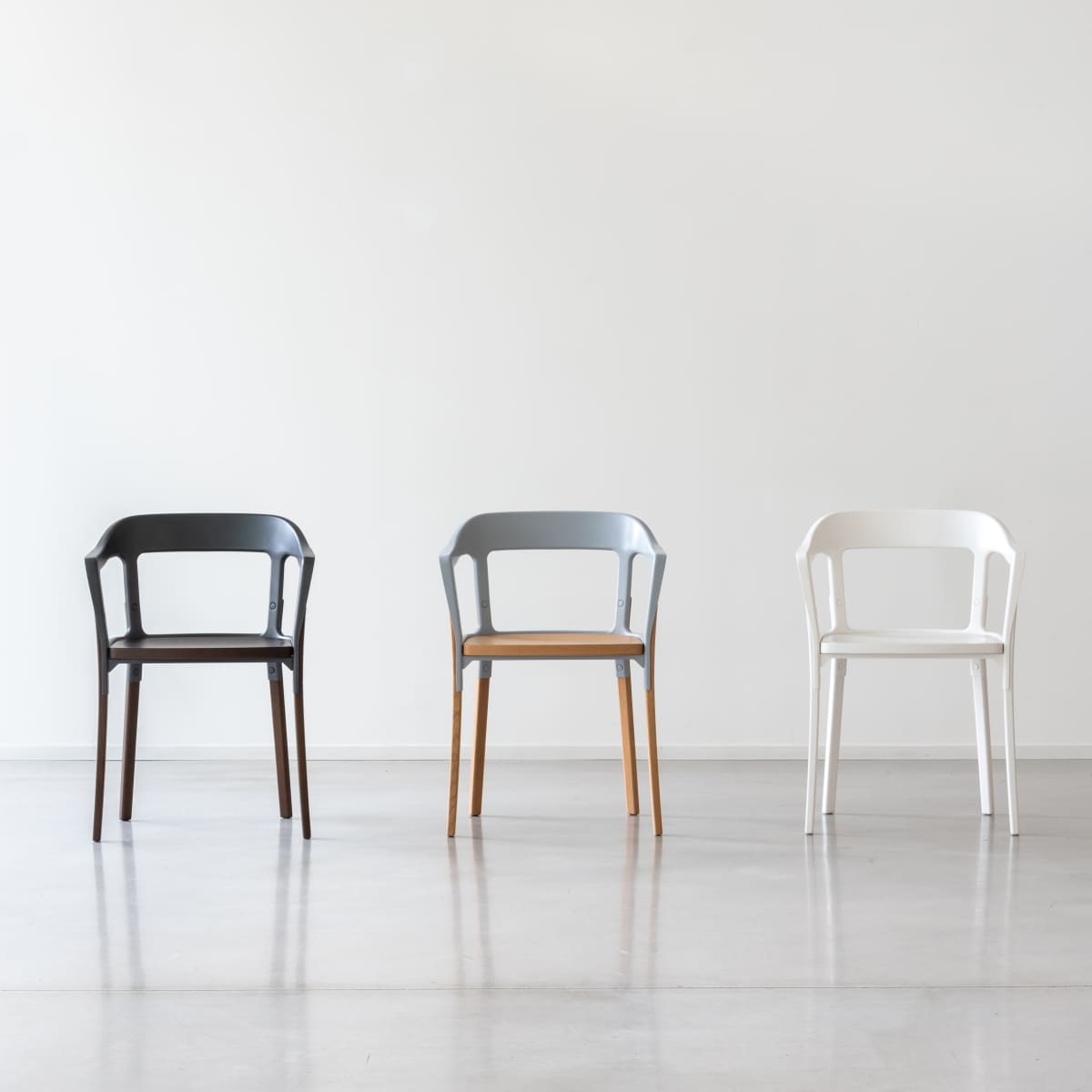 Steelwood Chair Sedia con braccioli in faggio naturale Magis | Poltroncina design in legno massello e lamiera di acciaio