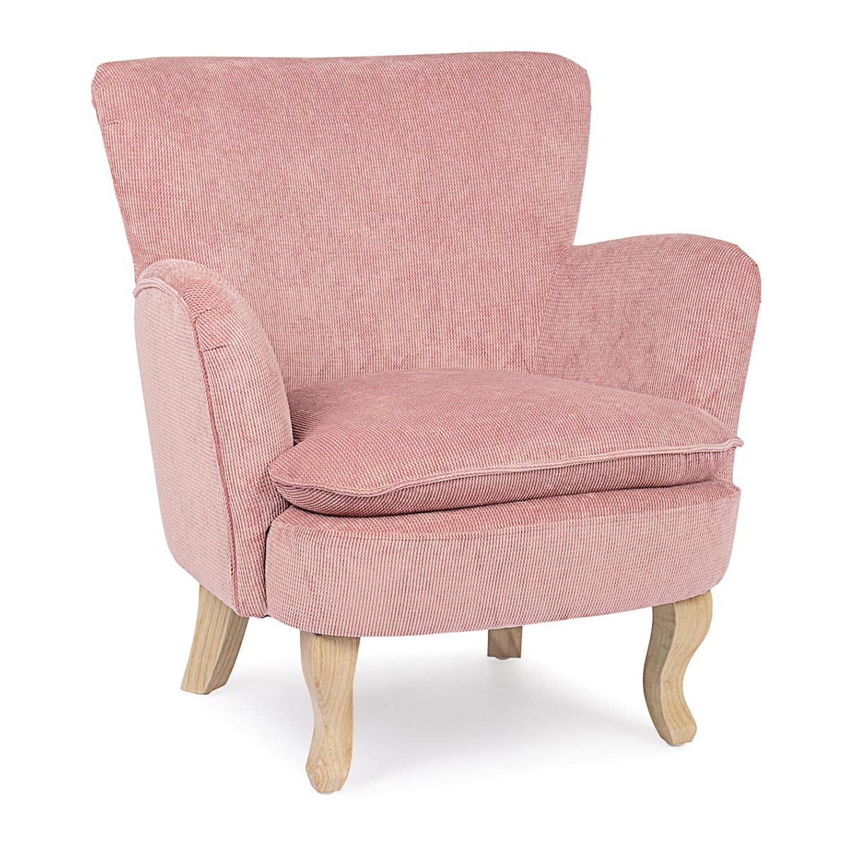La Poltrona Chenille rosa by Bizzotto è una poltrona di design con struttura in legno di pino e compensato, gambe in rubberwood, rivestimento in poliestere effetto velluto a coste. Densita' imbottitura in schiuma poliuretanica 25 kg/m3. Non sfoderabile. Gambe da assemblare..