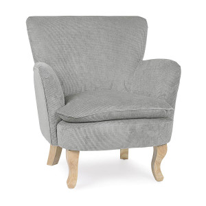 Poltrona Giliola grigio chiaro by Bizzotto è una poltrona di design con struttura in legno di pino e compensato, gambe in acciaio verniciato a polvere epossidica e rivestimento non sfoderabile in poliestere effetto velluto. Imbottitura in schiuma poliuretanica, densità schienale 18kg/m3 seduta 25 kg/m3. Gambe da assemblare.