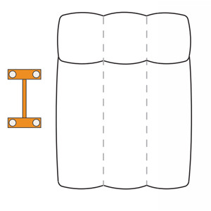 Struttura realizzata con masselli portanti in legno di abete massiccio di vari spessori, parti di tamponamento in fibra grezza e/o compensato. Fianchi in agglomerato di legno e/o multistrato di legno da 18 mm. Fibra grezza e agglomerato di legno in classe E1, pertanto a bassa emissione di formaldeide. Il telaio è rivestito con resinato da 200 gr. termoaccoppiato a vellutino 100% poliestere.