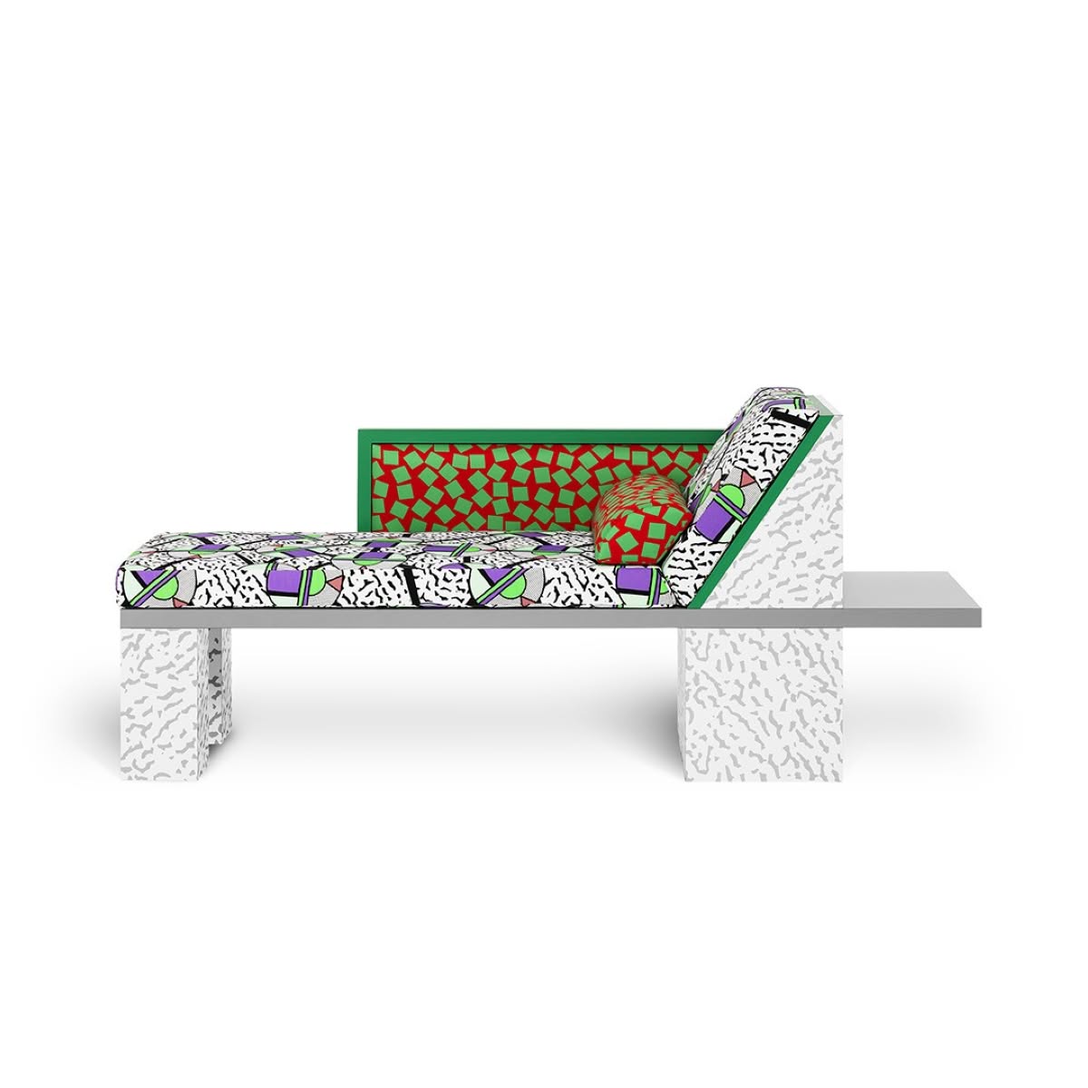 Memphis Milano Royal Chaise longue Nathalie Du Pasquier | Chaise longue in legno rivestito in laminato decorativo, imbottitura rivestita in cotone stampato. Tessuto disegnato da George J. Sowden