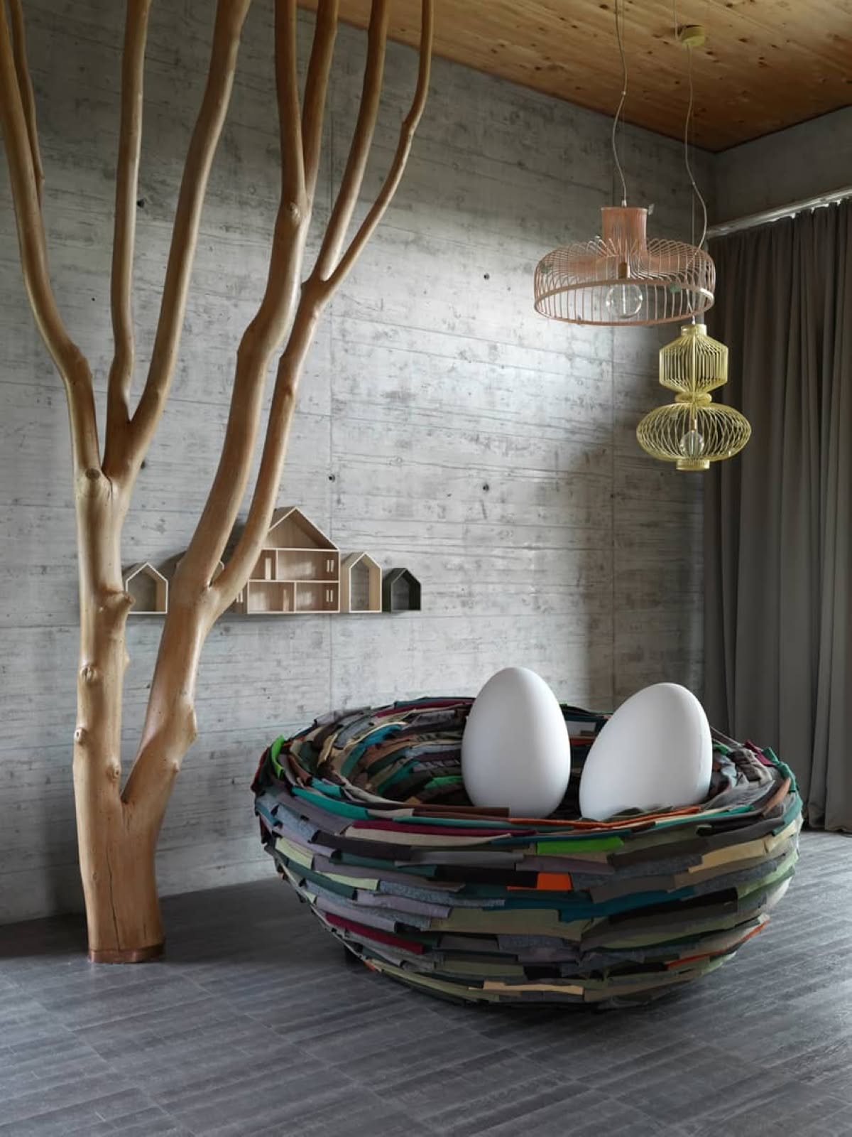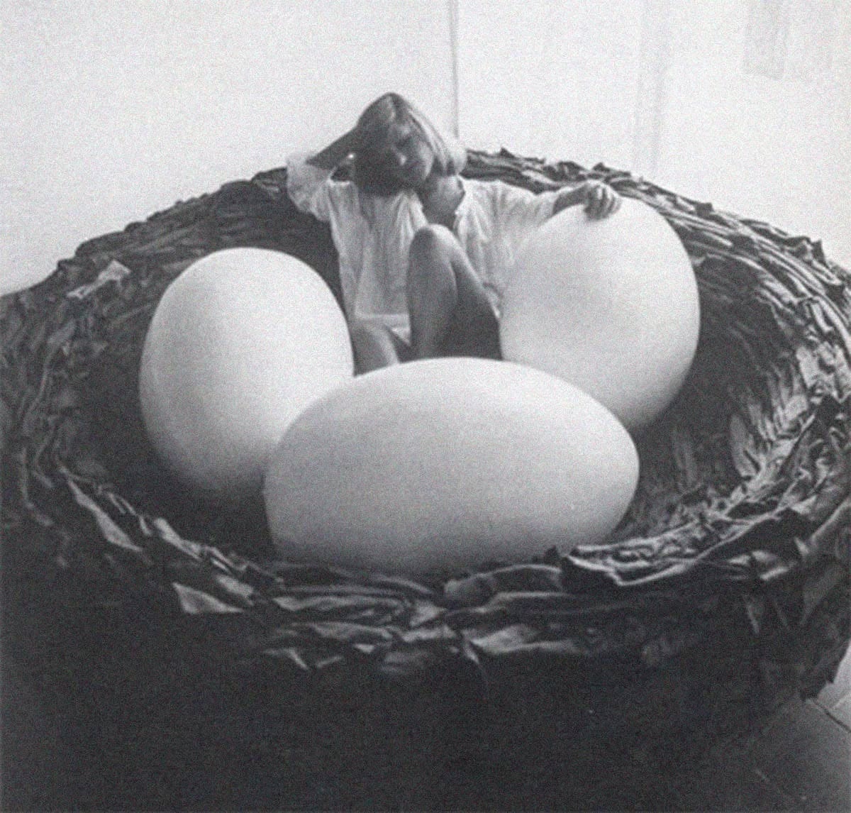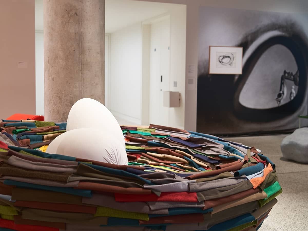 Gufram La Cova Nido d'amore | Nido d'amore in morbido poliuretano rivestito con ritagli di stoffa cuciti a mano. Uova removibili in morbido poliuretano con rivestimento sfoderabile in tessuto Limited Edition 1/38