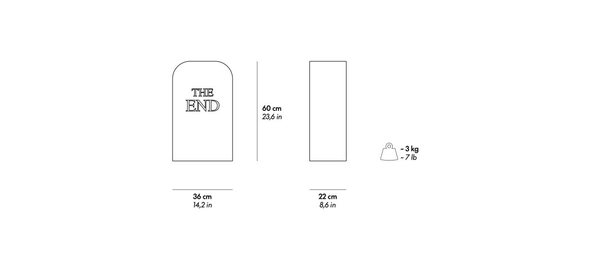 Gufram The End Black Seduta è la seduta di design in morbido poliuretano rifinita e decorata a mano in Guflac®. In una paradossale celebrazione del glorioso passato di Gufram, TOILETPAPER presenta "THE END", una seduta simile a una lapide che proclama la fine di Gufram in finto marmo. Ironia della sorte, il suo aspetto funereo è annullato dalla morbidezza e dalla leggerezza della sua composizione in poliuretano. E, nonostante dichiari la fine di Gufram, ci si può sedere su questa lapide come su uno sgabello, incarnando lo spirito di anti-design che Gufram ha sempre sostenuto. Ecco la collezione esclusiva di TOILETPAPER per Gufram, una serie di oggetti di design innovativi che fondono funzionalità e visione artistica. Questa collezione include GOD, una reinterpretazione dell’iconico CACTUS® di Gufram; SOAP, una monumentale saponetta per la pulizia della casa, e THE END, una seduta a forma di tomba che segna ironicamente la fine di Gufram. Ogni pezzo, nato dalla mente creativa di Maurizio Cattelan e Pierpaolo Ferrari, rappresenta un’audace deviazione dalle convenzioni del design tradizionale, introducendo un elemento di sorpresa nei beni d’uso comune. Questo approccio unico induce a una riflessione giocosa e satirica sul mondo del design, proponendo allo stesso tempo un nuovo, audace e inedito modo di arredare la casa.