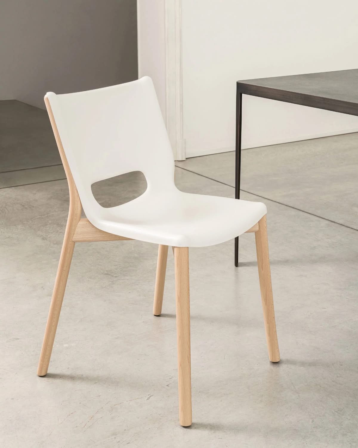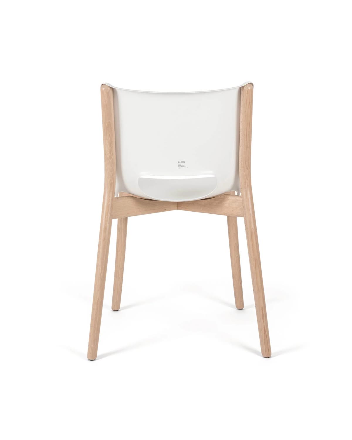 Alessi PS19 W Poele Chair Sedia acciaio Bianco Philippe Starck | Sedia monoscocca in acciaio colorato con resina epossidica, bianco. Struttura in legno di faggio tinta naturale