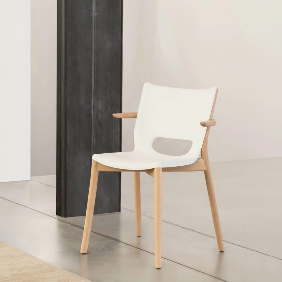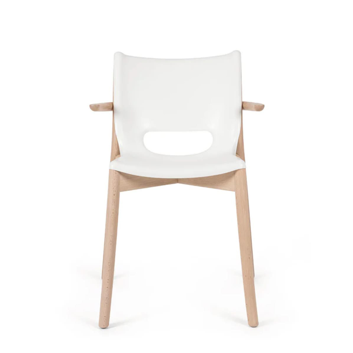 Alessi PS20 W Poele Chair Sedia con braccioli acciaio Bianco Philippe Starck | Sedia monoscocca in acciaio colorato con resina epossidica, bianco. Struttura e braccioli in legno di faggio tinta naturale
