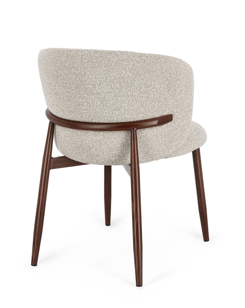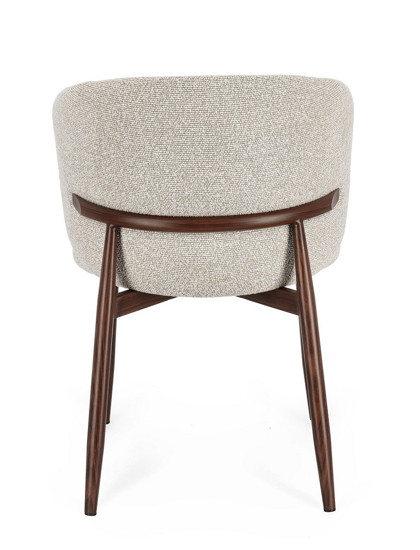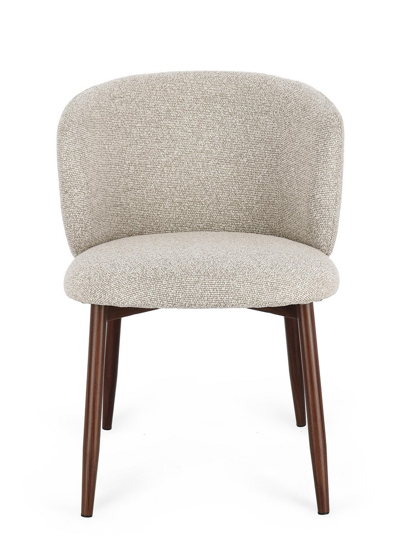 Sedia Amalia Noce-Beige Bizzotto | Sedia design in acciaio effetto legno e tessuto effetto bouclè