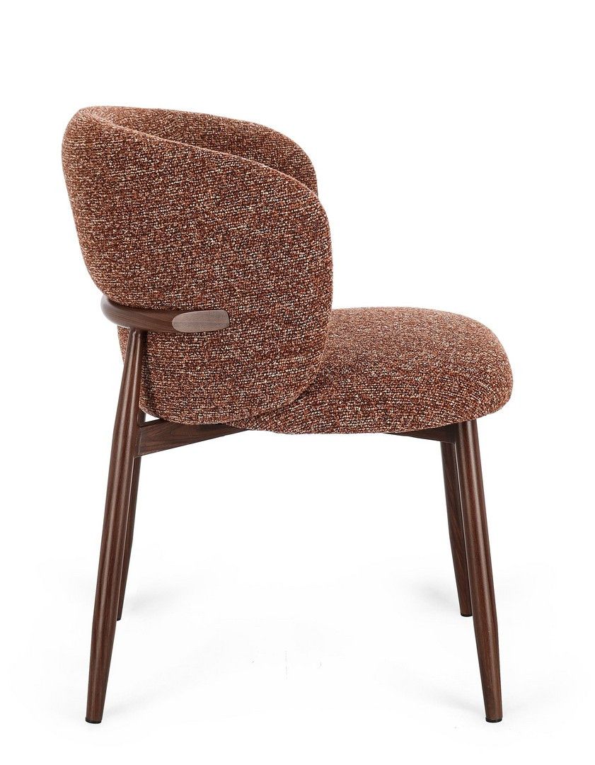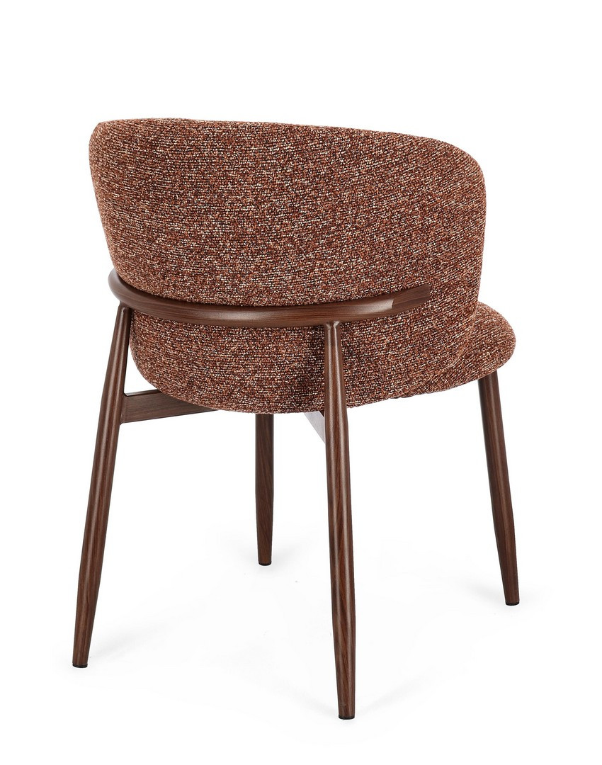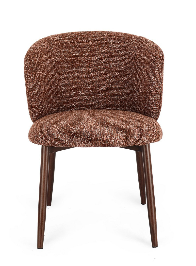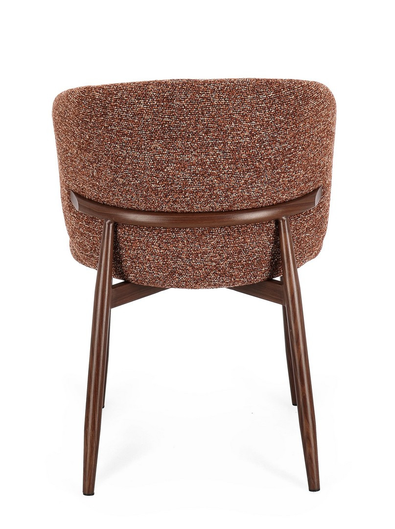 Sedia Amalia Noce-Terracotta Bizzotto | Sedia design in acciaio effetto legno e tessuto effetto bouclè