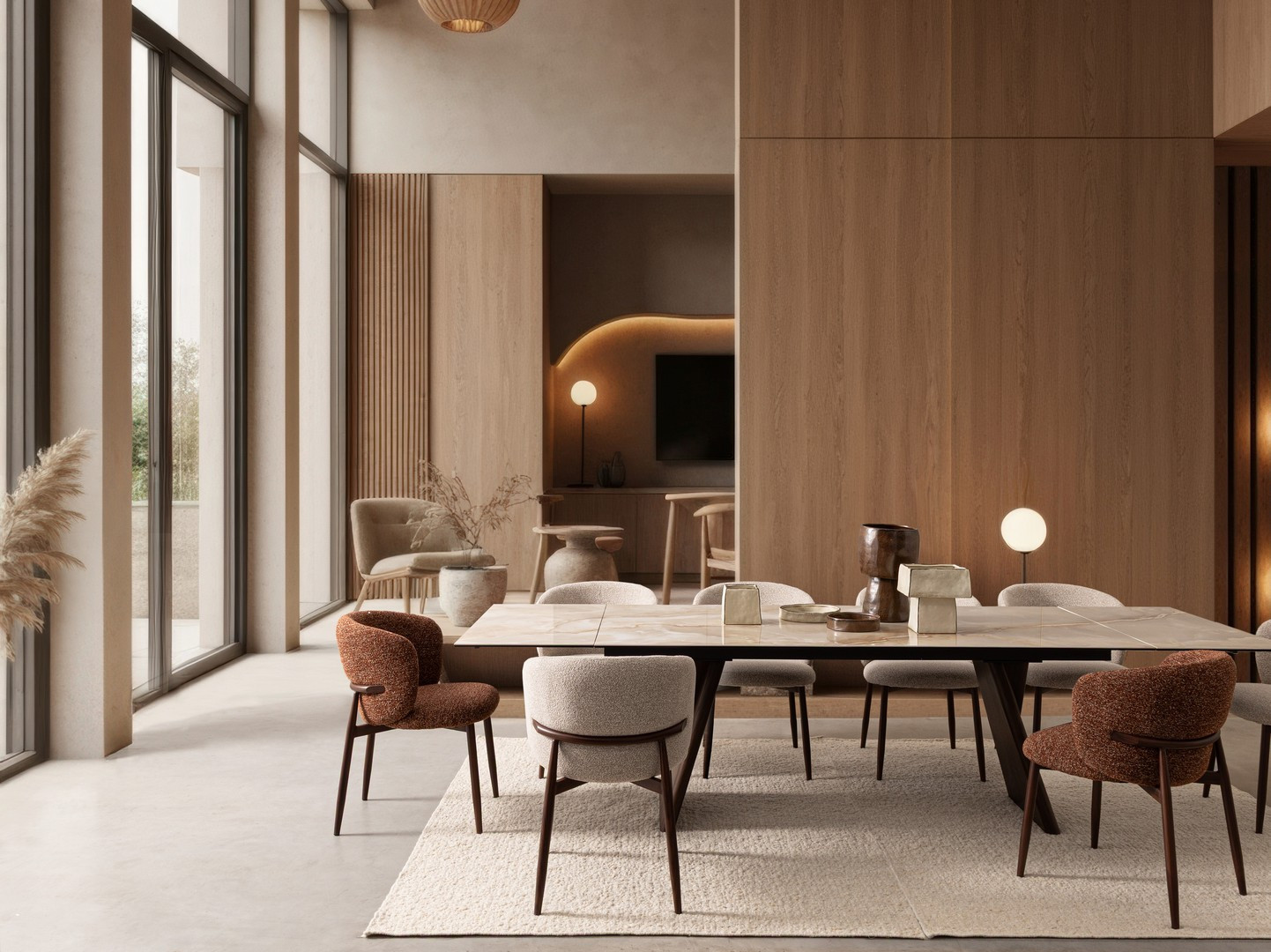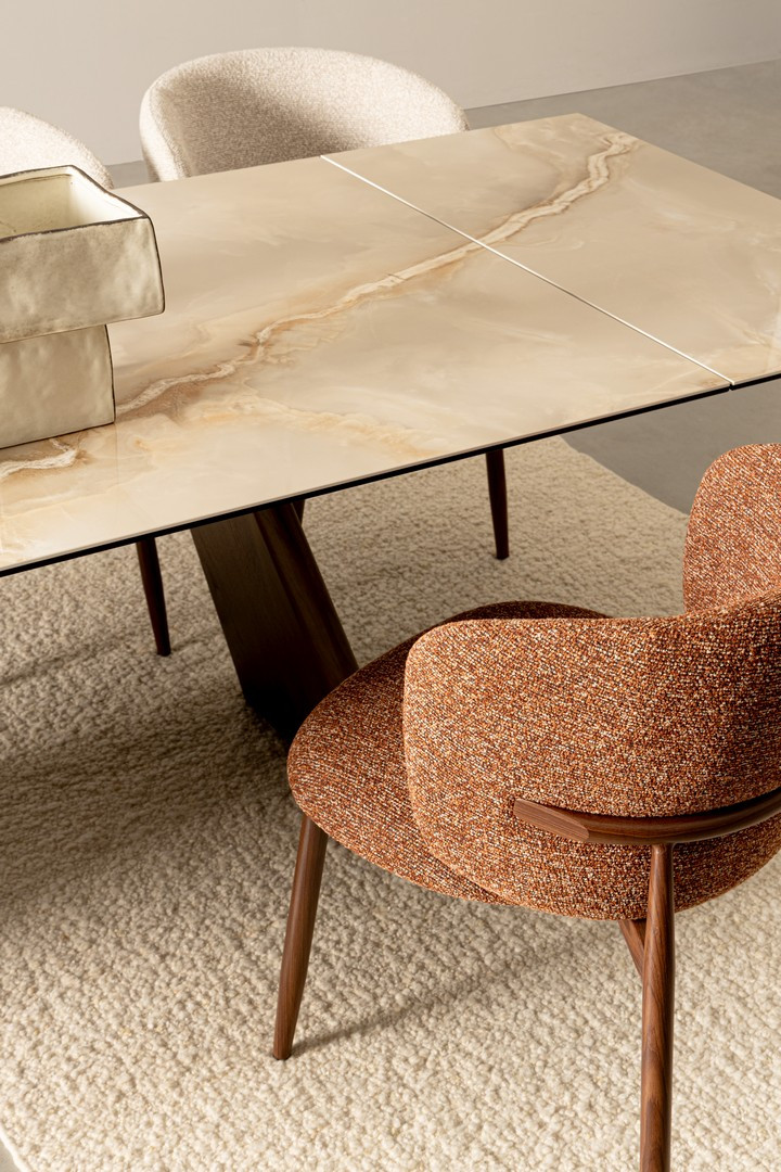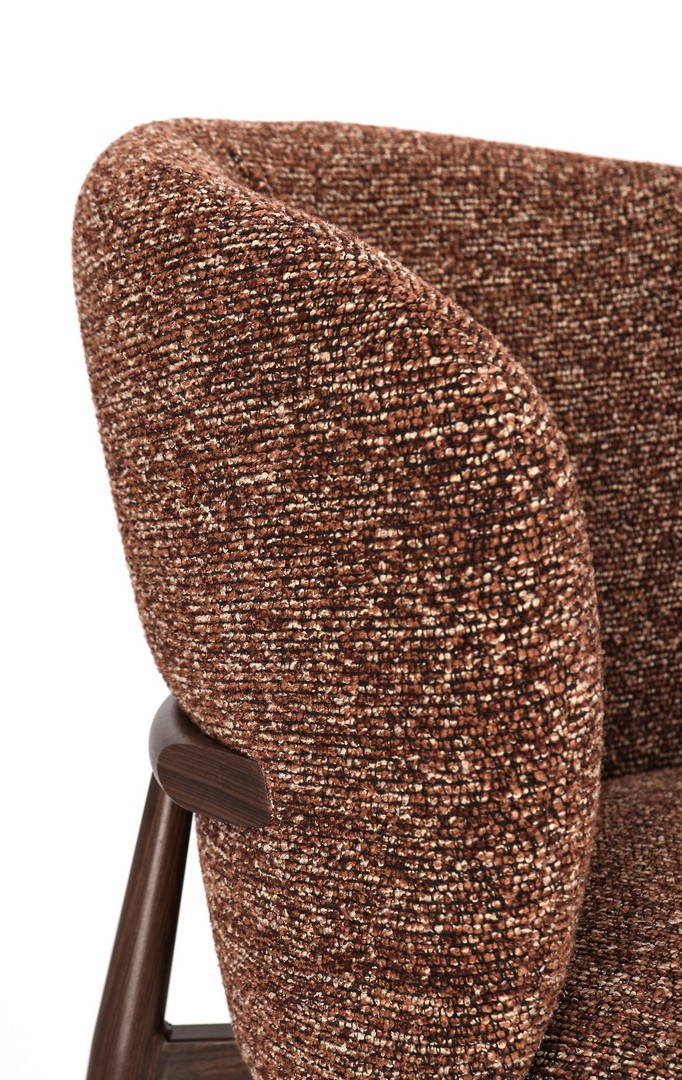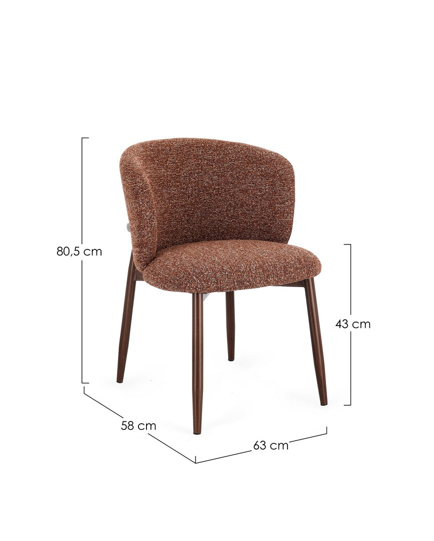Sedia Amalia Noce-Terracotta Bizzotto | Sedia design in acciaio effetto legno e tessuto effetto bouclè