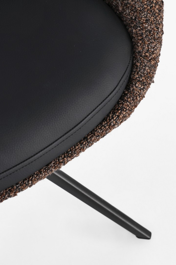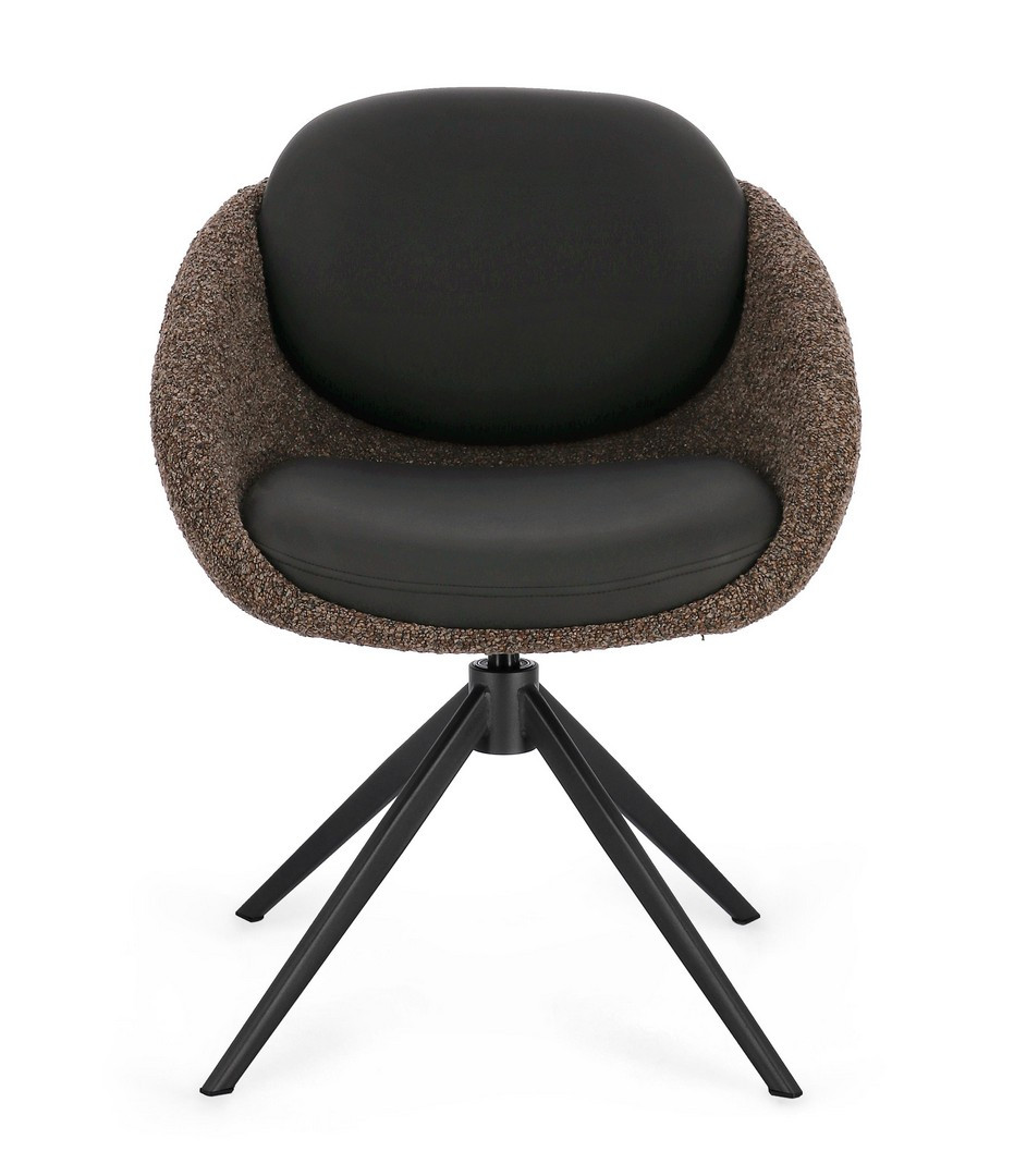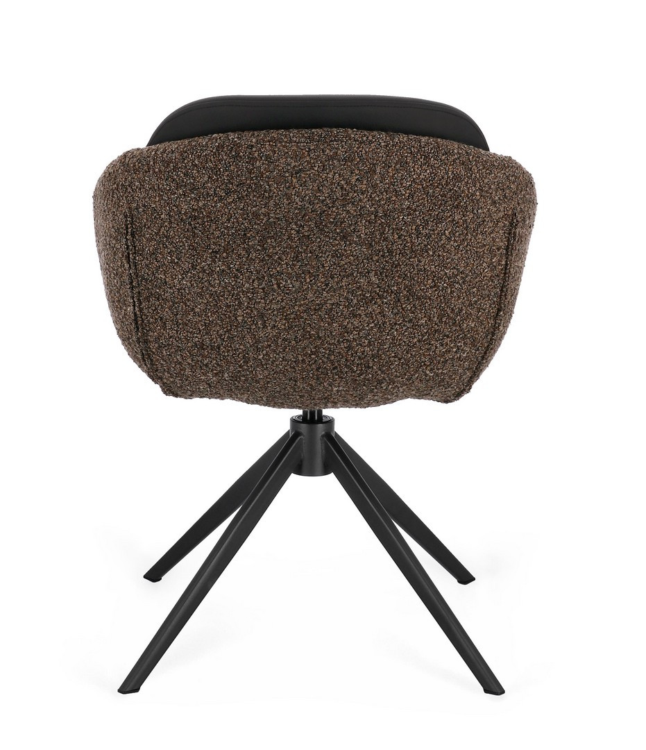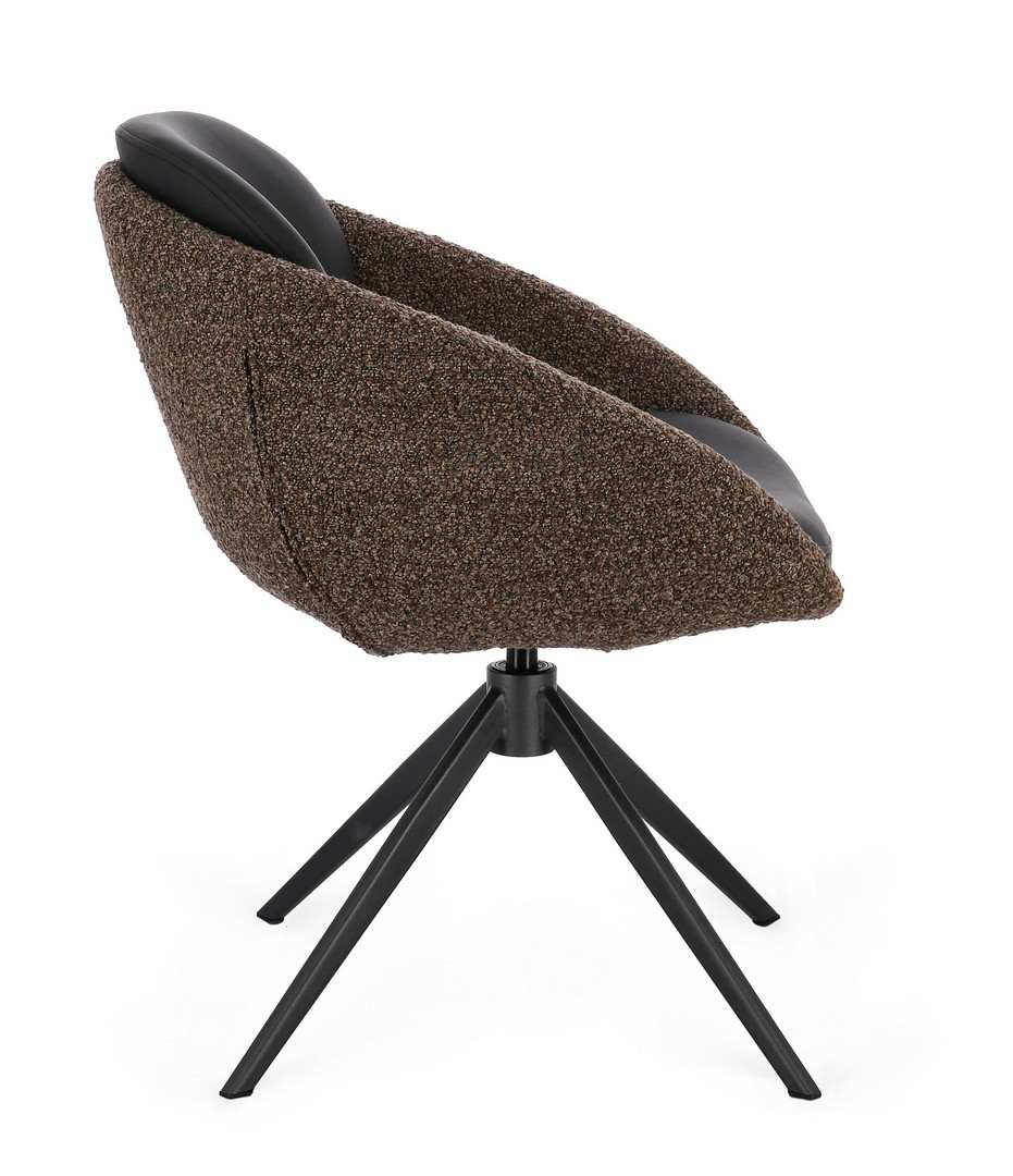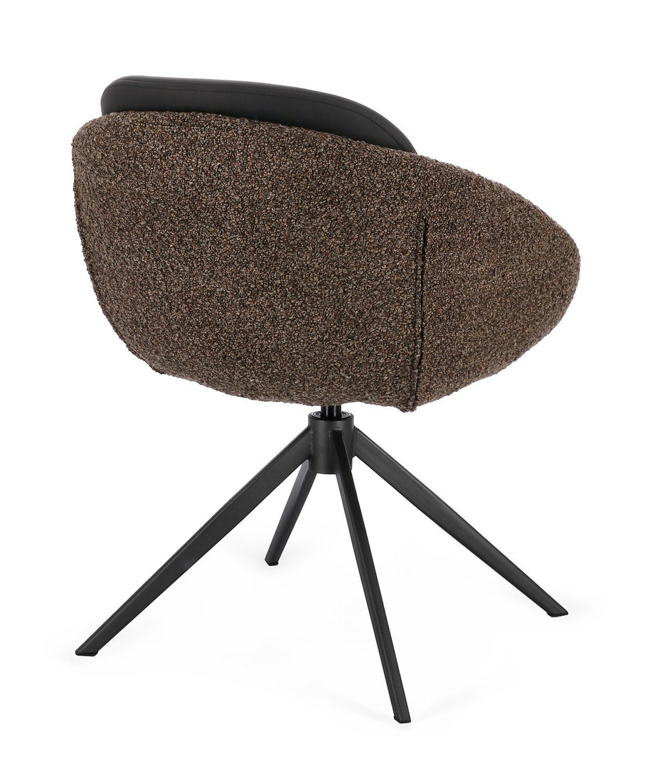 Sedia Averik Caffè Bizzotto | Sedia design girevole in acciaio e tessuto effetto bouclè