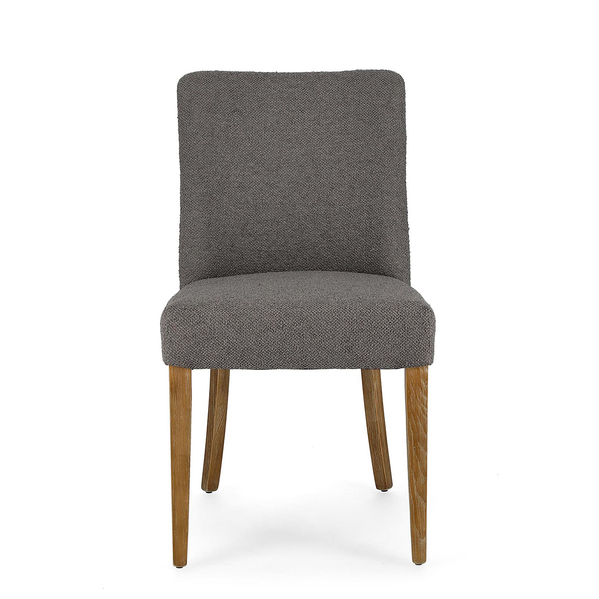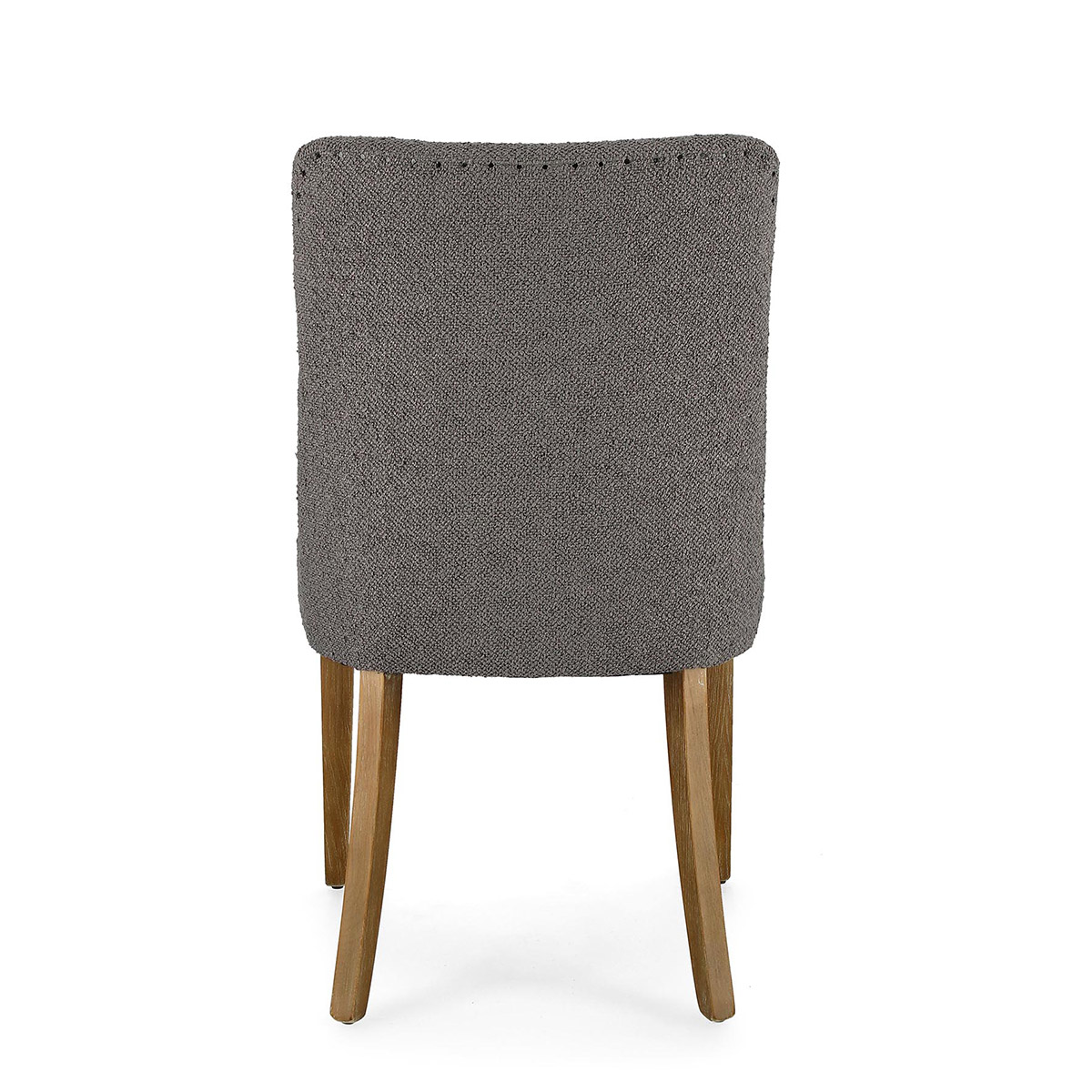 La Sedia Beatriz grigio bouclè di Bizzotto è una sedia di design con struttura in legno di quercia. Rivestimento in poliestere effetto bouclè. Schienale con applicazione di borchie in metallo. Densità imbottitura in schiuma poliuretanica seduta 30kg/m3, schienale 25kg/m3.