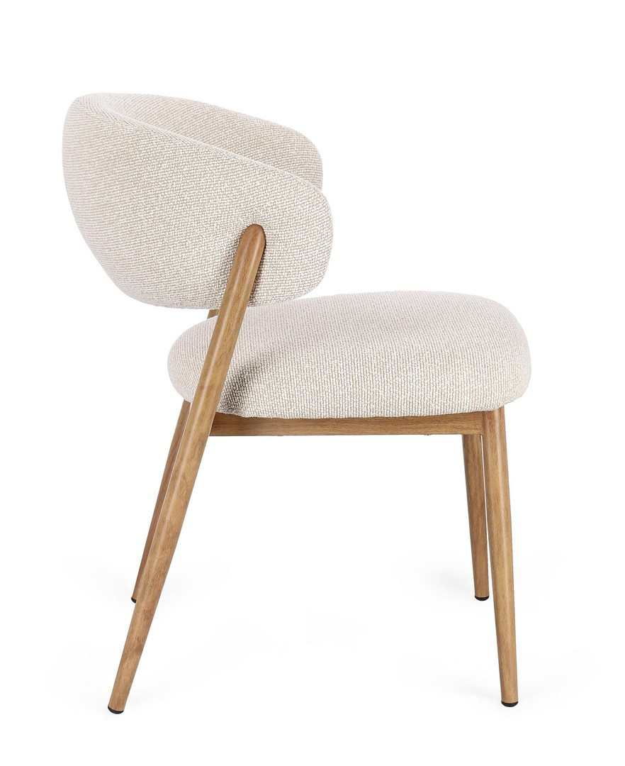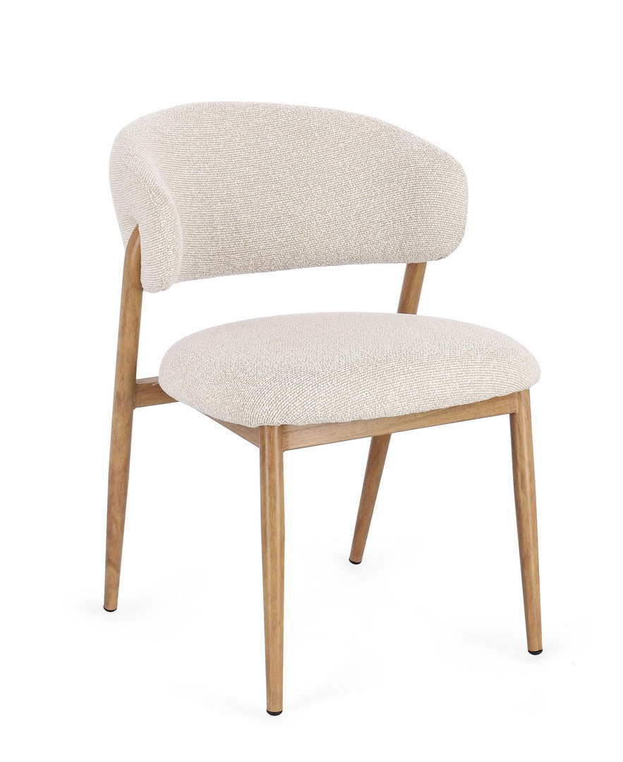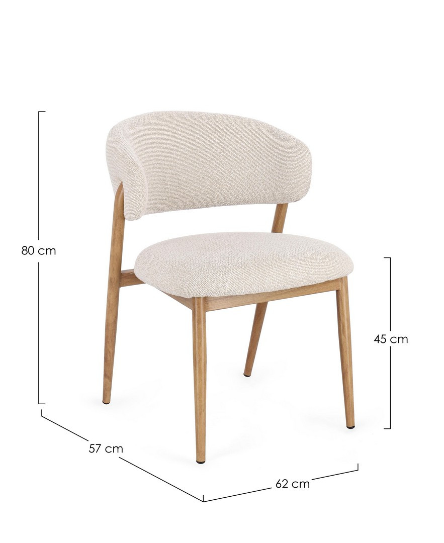 Sedia Cassandra Naturale-Lino Bizzotto | Sedia design in acciaio effetto legno e tessuto effetto bouclè
