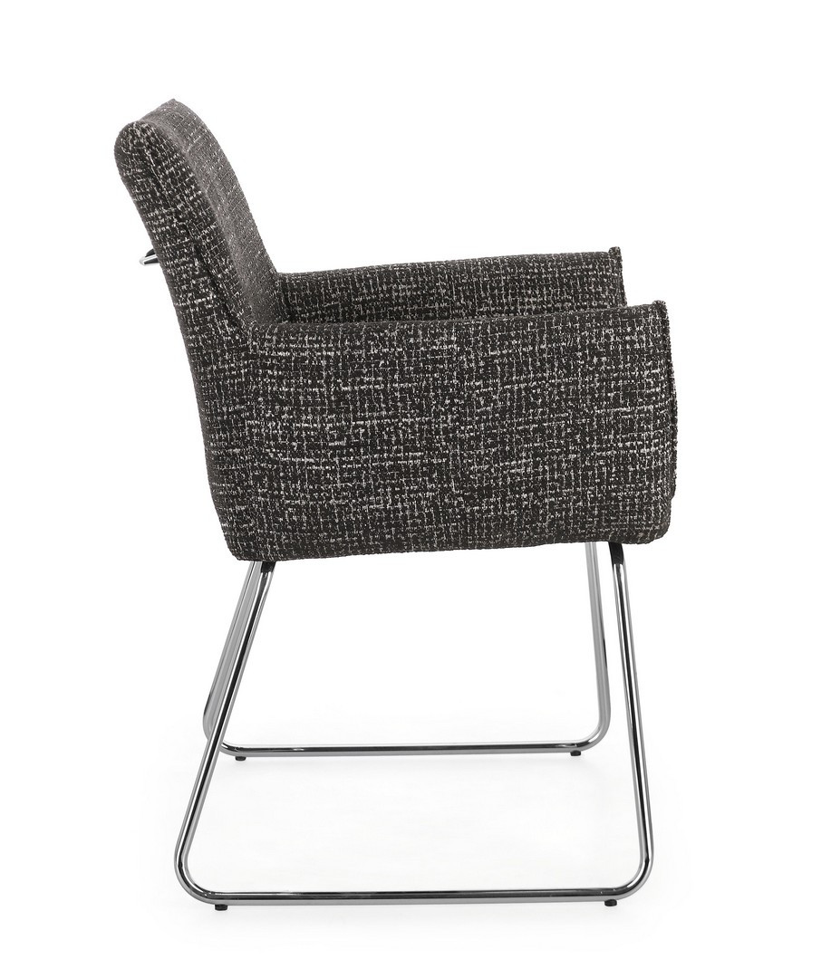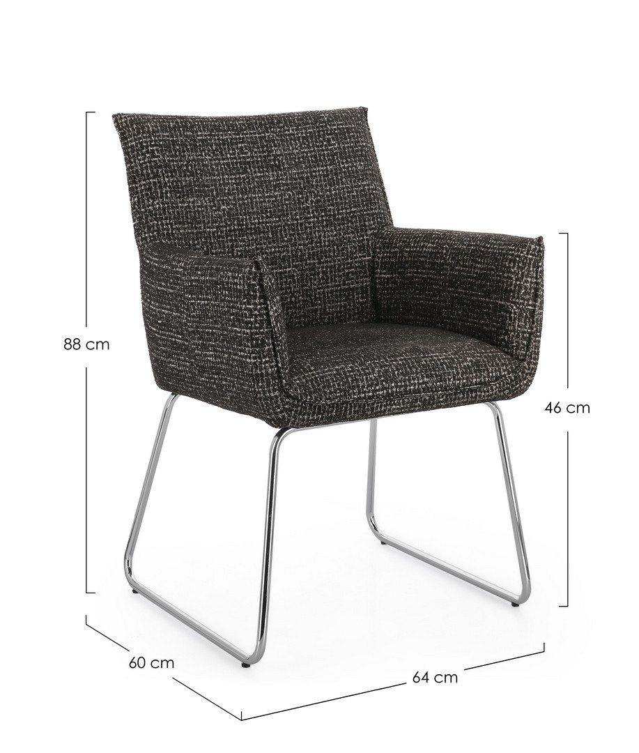 Sedia con braccioli Evelyn Carbone Bizzotto | Sedia design in acciaio e tessuto effetto Tweed