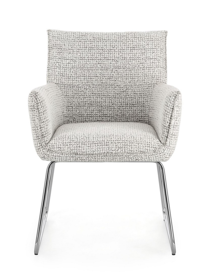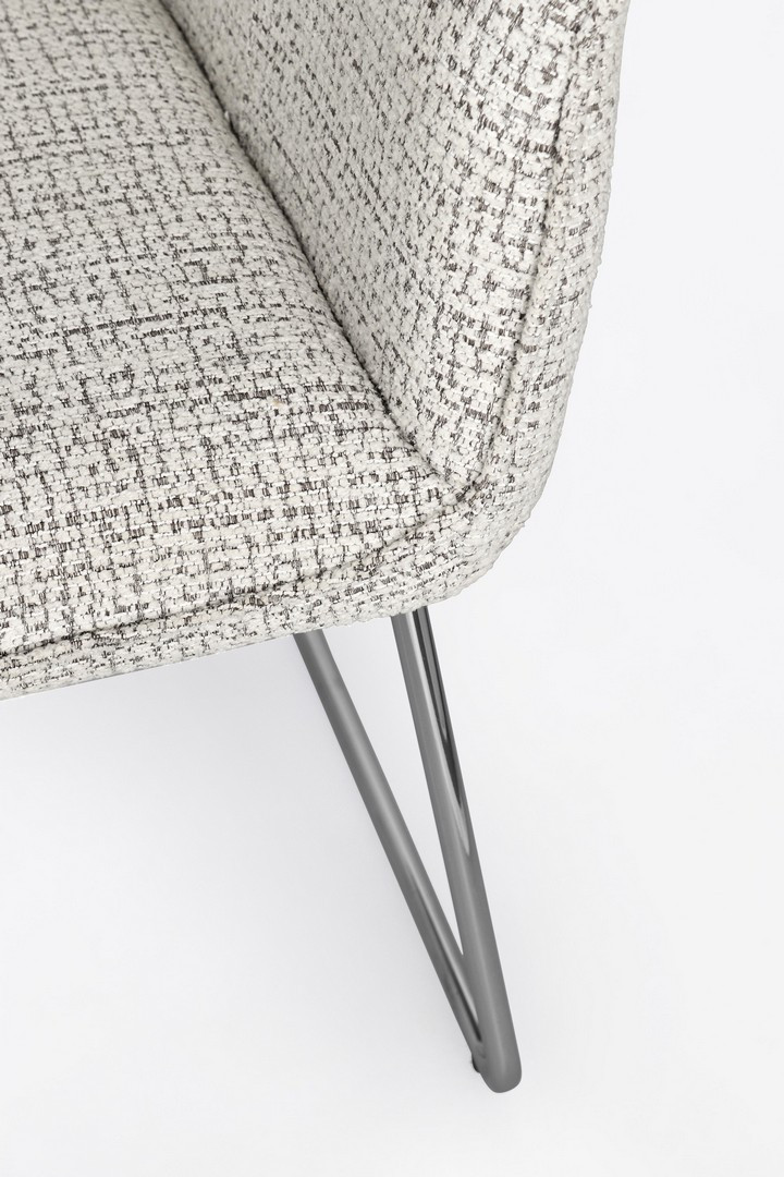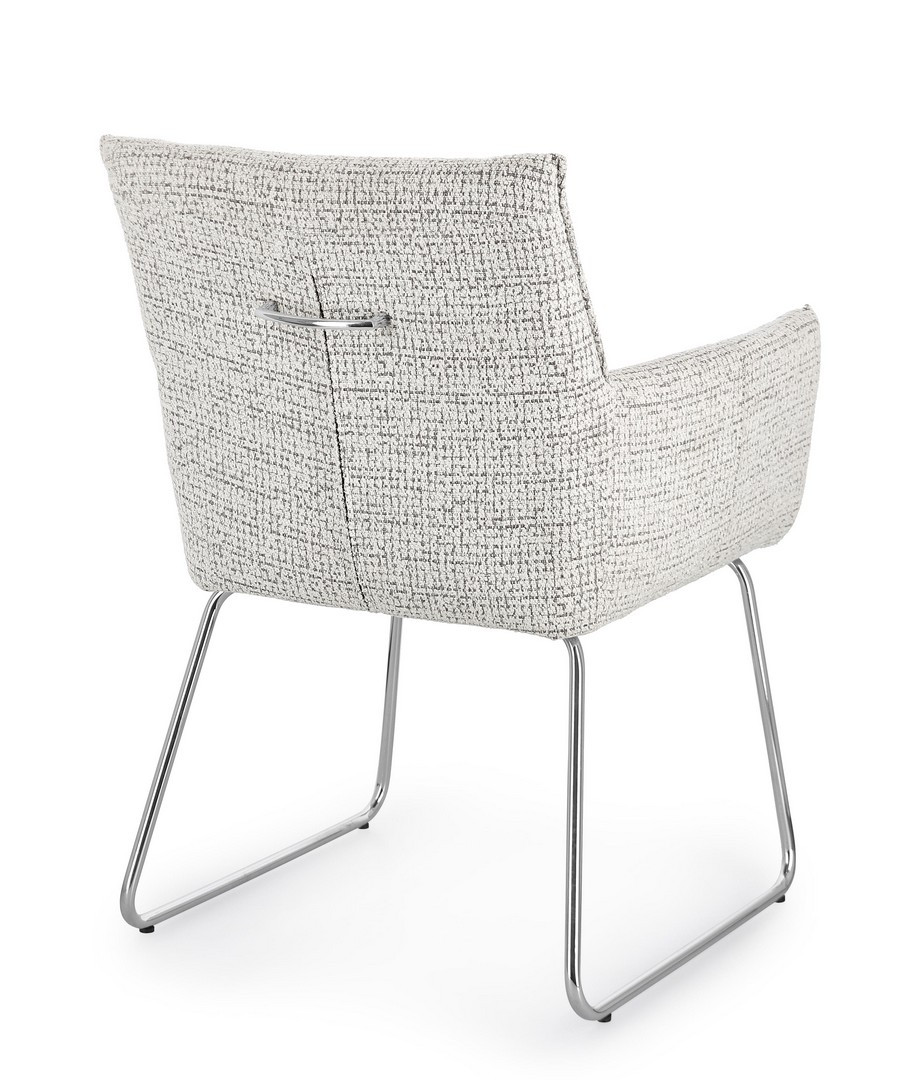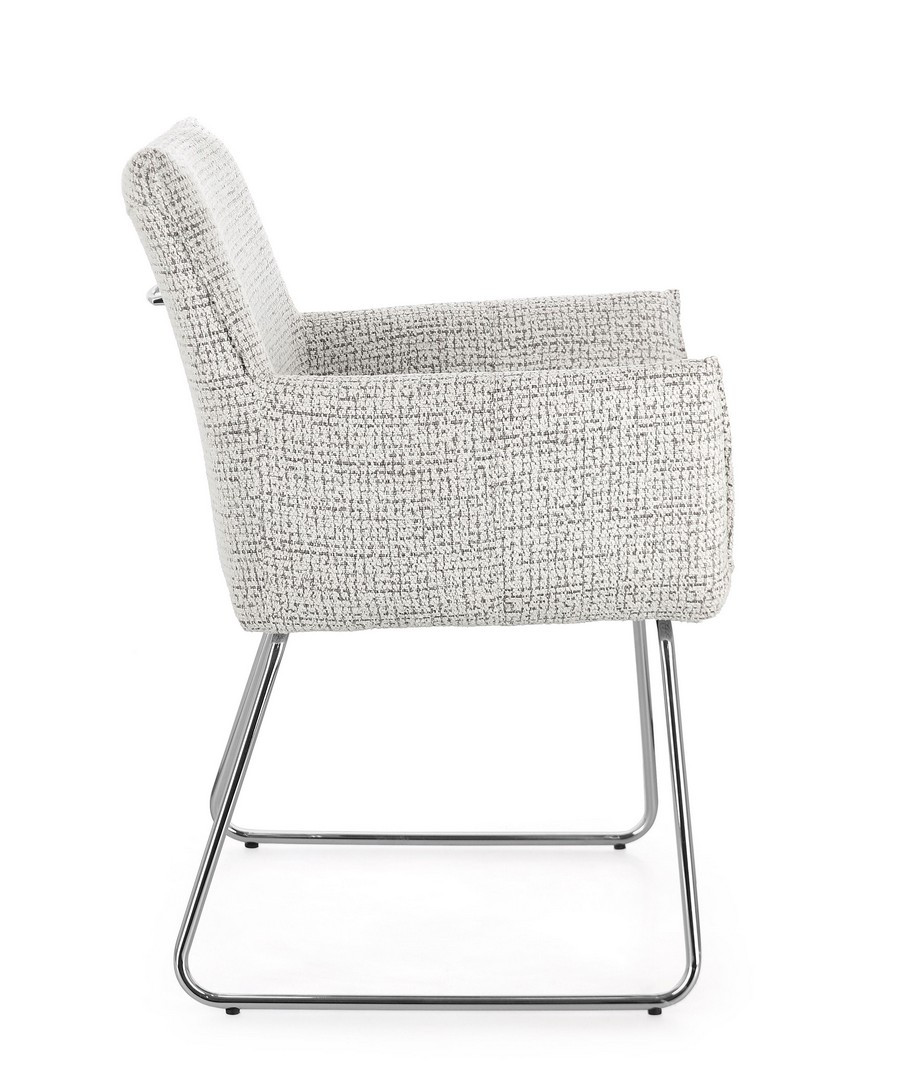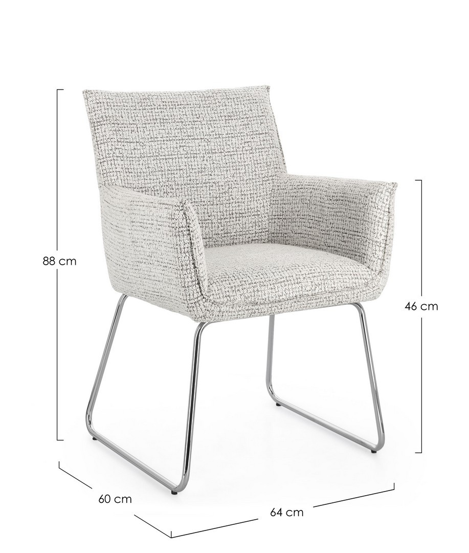 Sedia con braccioli Evelyn Ghiaccio Bizzotto | Sedia design in acciaio e tessuto effetto Tweed