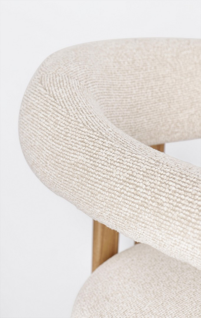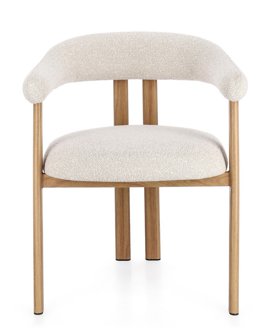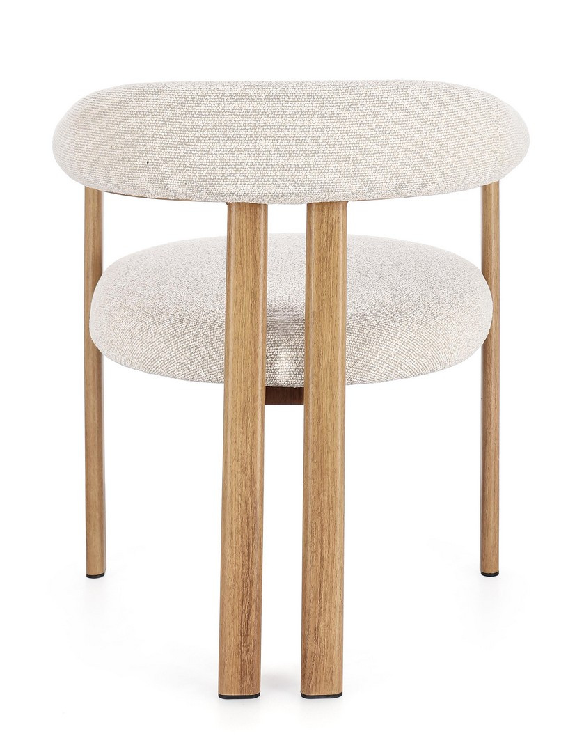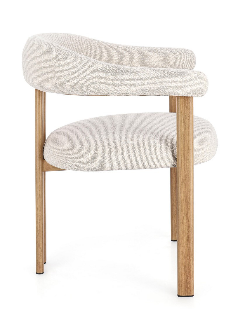 Sedia con braccioli Giuditta Naturale-Lino Bizzotto | Poltroncina design in acciaio e tessuto effetto bouclè