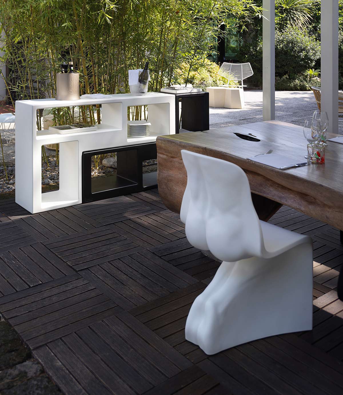 Sedia in polietilene opaco tinto in massa realizzata mediante stampaggio rotazionale