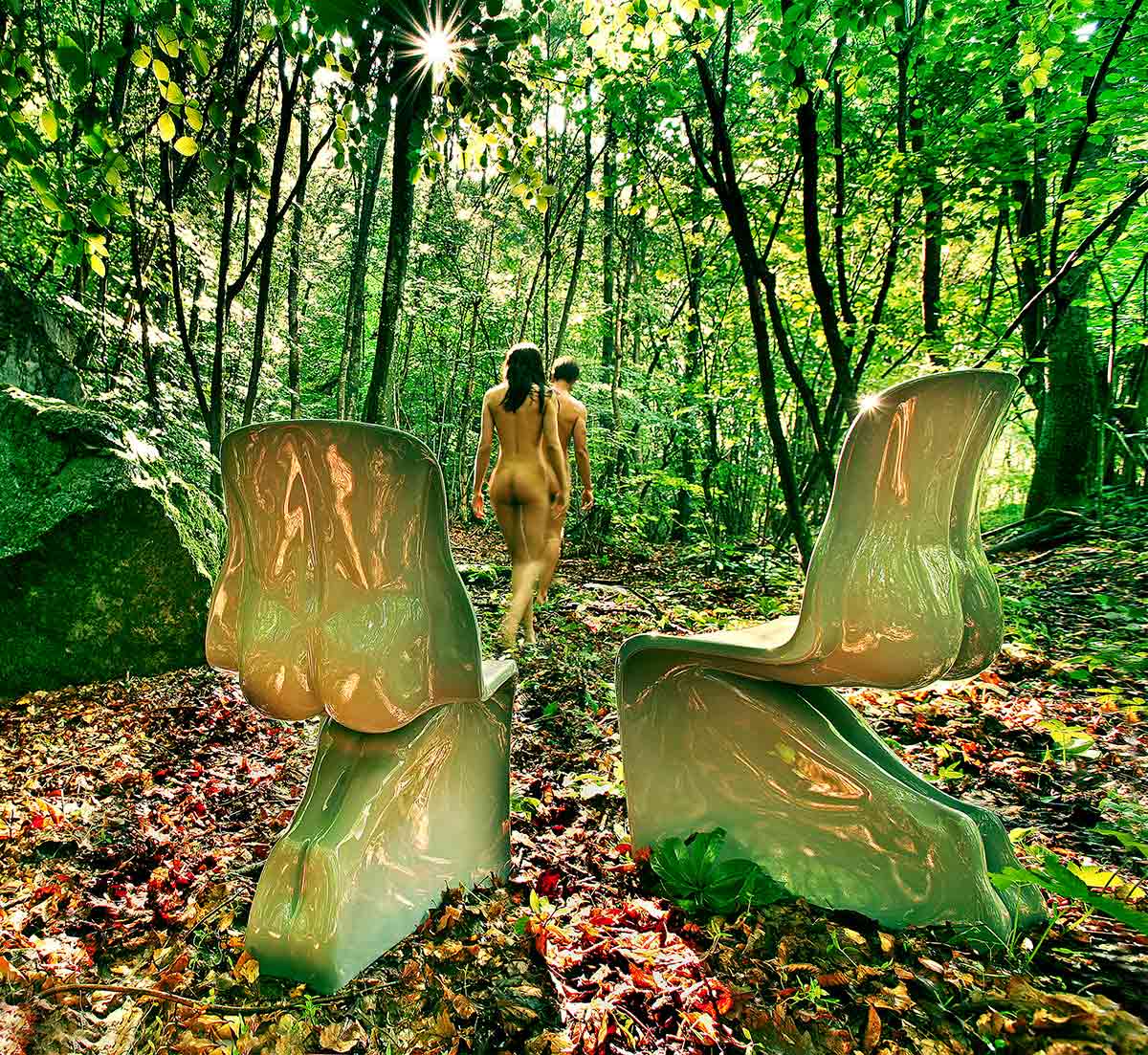 Seduta realizzata mediante stampaggio rotazionale. La loro forma deriva dalla scansione tridimensionale di due sculture in gesso