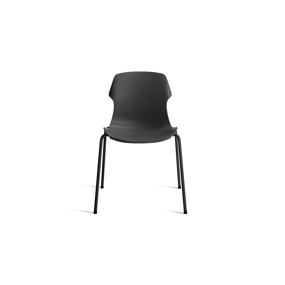 Gambe in metallo verniciato o cromato. Scocca in polipropilene. Piedini autolivellanti. La scocca in polipropilene, lucida nella parte posteriore e opaca nella parte anteriore, può essere imbottita e rivestita sia frontalmente che totalmente (fronte/retro).