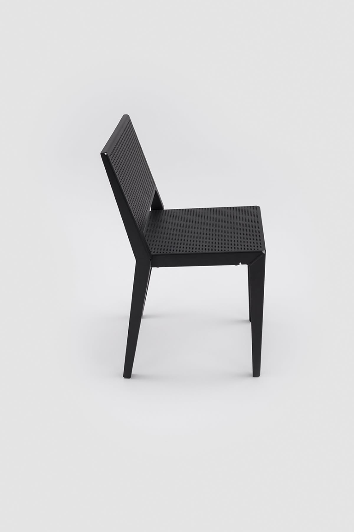 ABChair Nero Sedia di Paolo Rizzatto per Danese Milano è una sedia di design impilabile realizzata a partire da un’unica lastra di alluminio anodizzato. La struttura è composta di due parti tagliate al laser in forma di pettine, piegate e saldate nel minor numero possibile di punti nel colore bianco. Il risultato è una sedia leggera, maneggevole e riciclabile.