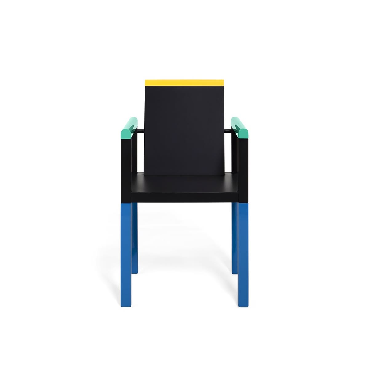 Memphis Milano Palace Sedia di George J. Sowden è una sedia di design in legno laccato. La solennità e l’essenzialità di Palace di George J. Sowden fanno di questa sedia una vera e propria icona della silenziosa trasformazione di Memphis. Palace reinterpreta le forme razionaliste del design citando nelle linee pulite del Bauhaus mettendo in evidenza gli elementi strutturali con il colore.