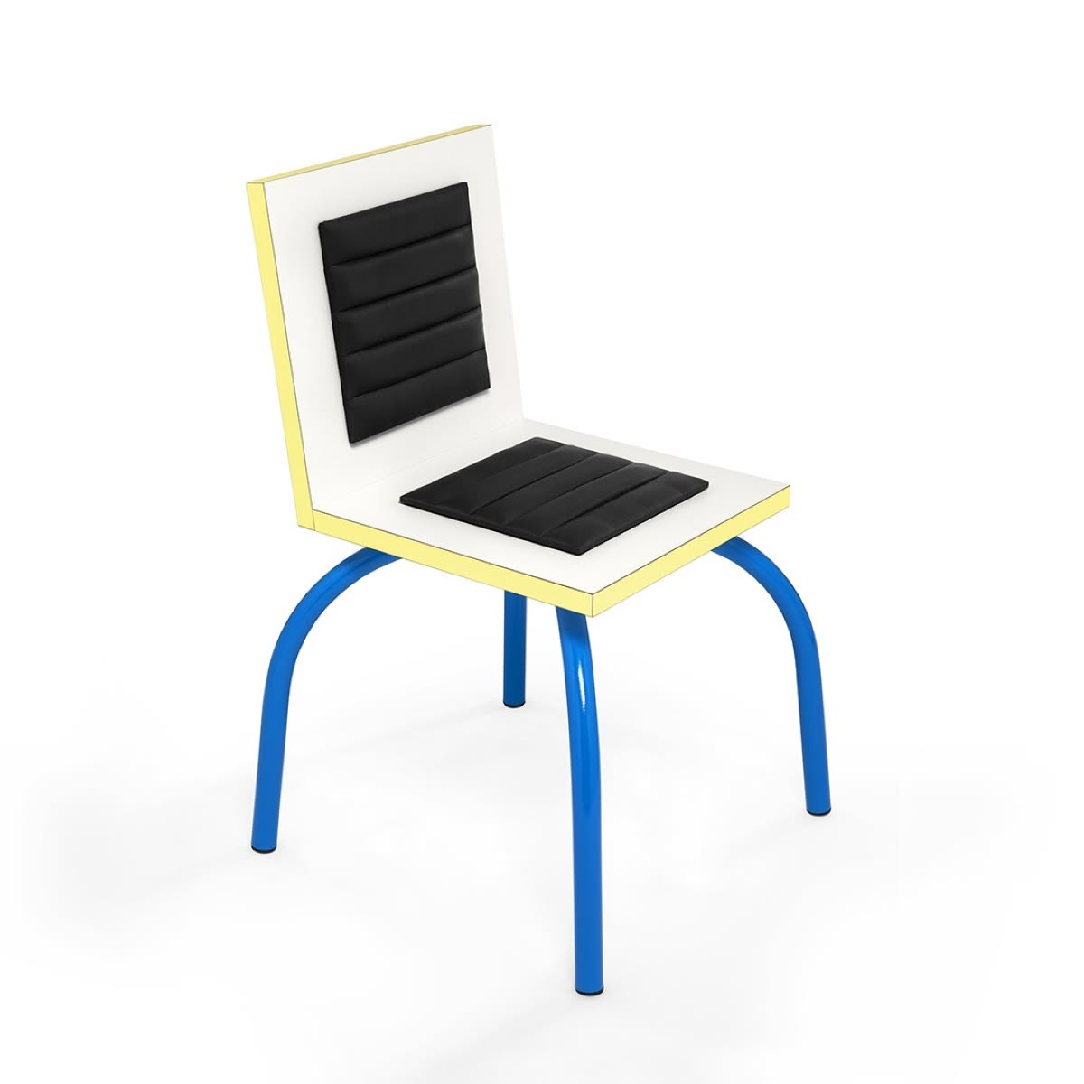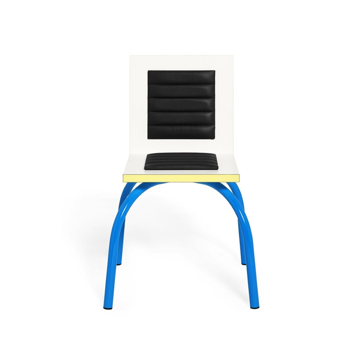 Memphis Milano Riviera Black Sedia Michele De Lucchi | Sedia in legno rivestito in laminato decorativo con imbottitura in tessuto, gambe in metallo verniciato.
